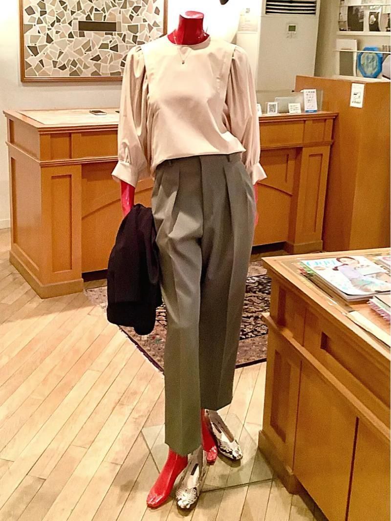 きれいめにはもちろん、デニムやワイドパンツなどのカジュアルなボトムスを合わせて甘さを抑えた着こなしもおすすめ。