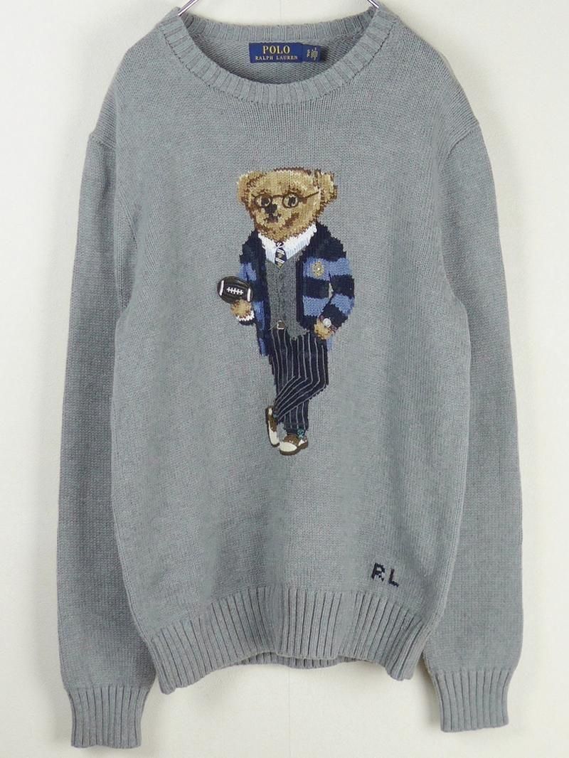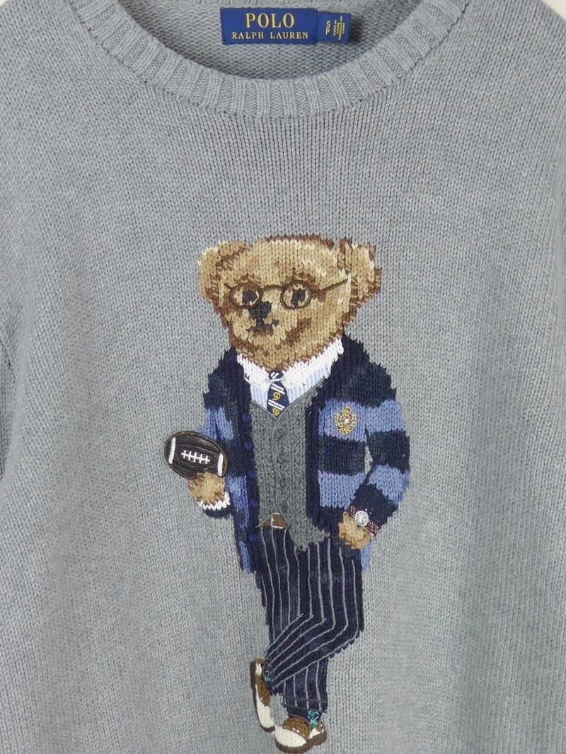 さらっとした着心地のコットンミドルゲージニットに、ビッグベアがアイキャッチーな一枚。