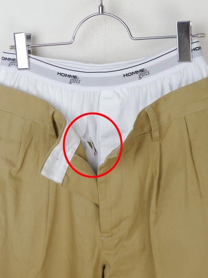 フロントボクサー部分ヤブレあり。着用時にはほとんど隠れる箇所で、致命的なダメージではございませんが、やや難のある商品です。ご理解の上、ご検討ください。