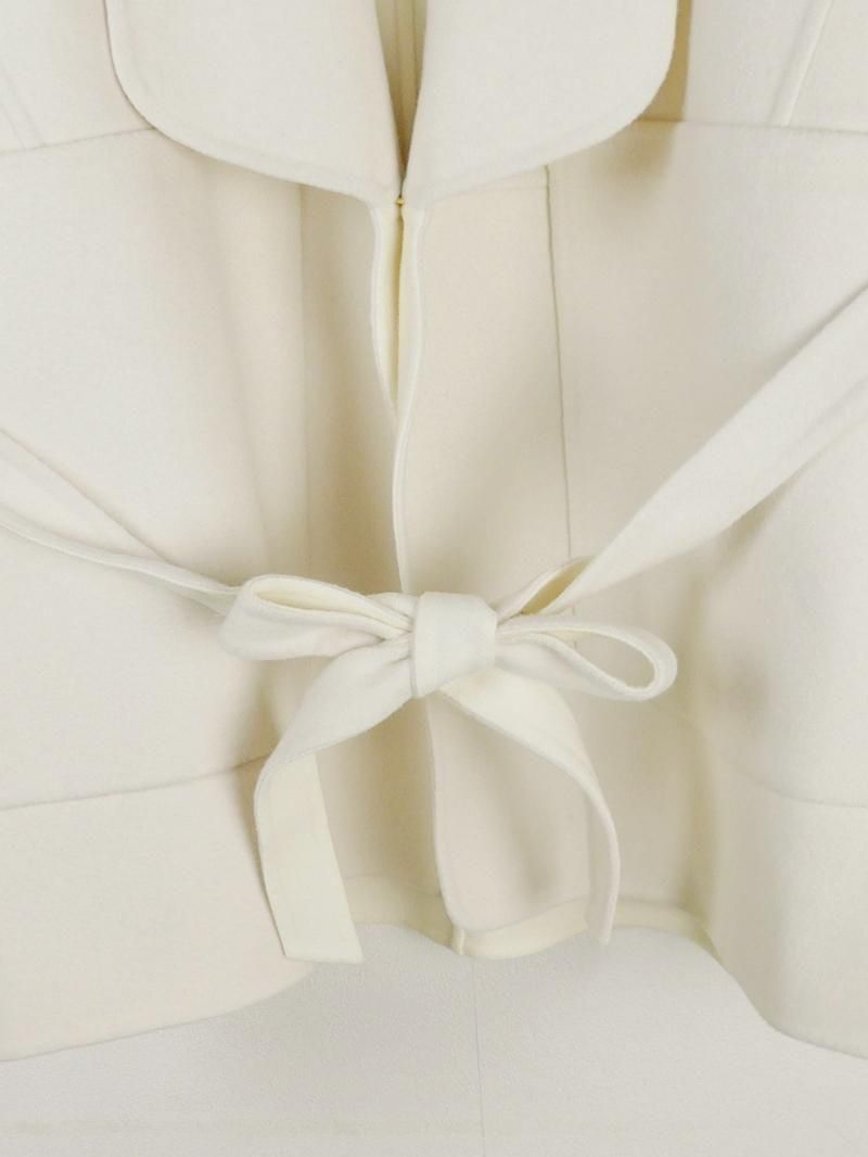 上質ウールケヌキ素材を使用、まるっと下にボリュームをもたせたショールカラーが印象的なジレ/ベストです。