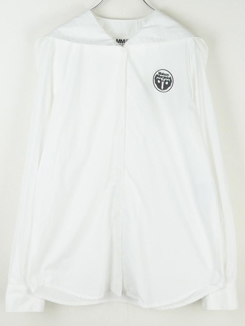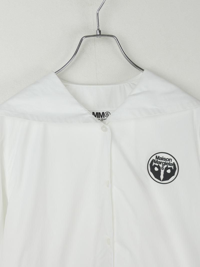 エムエムシックス2020SSのラバーロゴ付きセーラーシャツ。