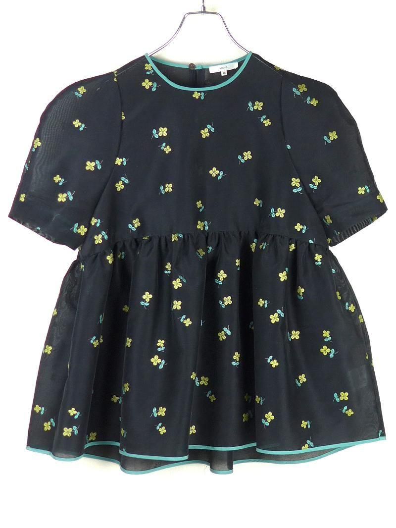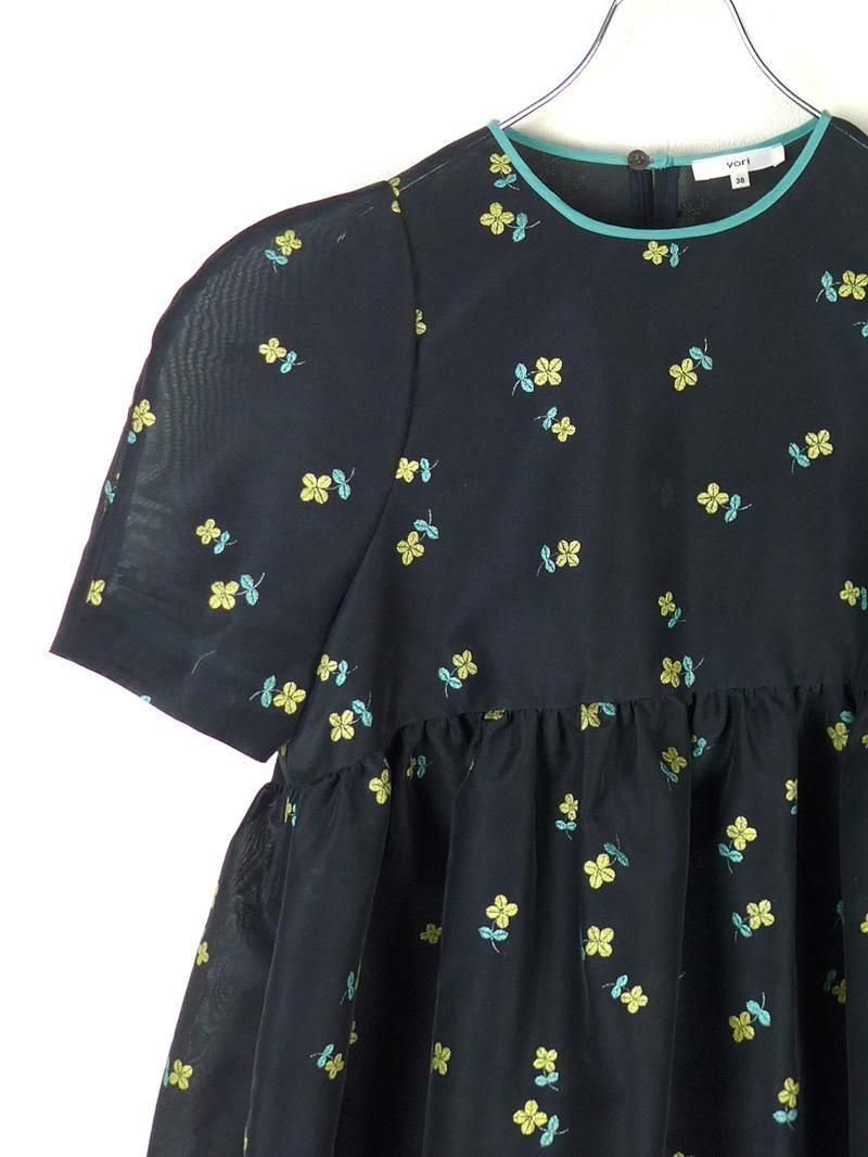 ヨリ2025SSのラメクローバーパフブラウス。