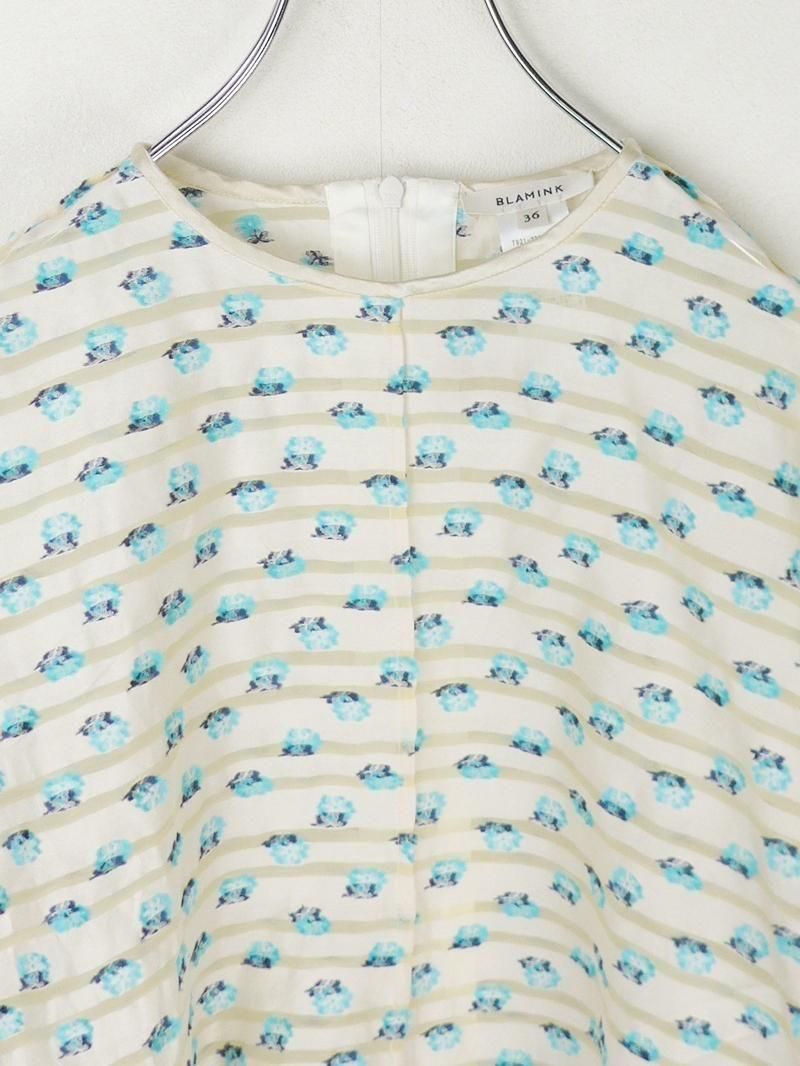 ボーダー柄にのせたフラワージャカード素材が印象的なプルオーバーブラウス。