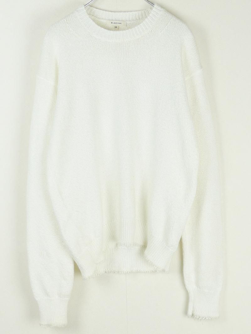 緩い編地と洗いをかけたような風合いで、柔らかい着心地に仕上げたコットンミドルゲージニット。