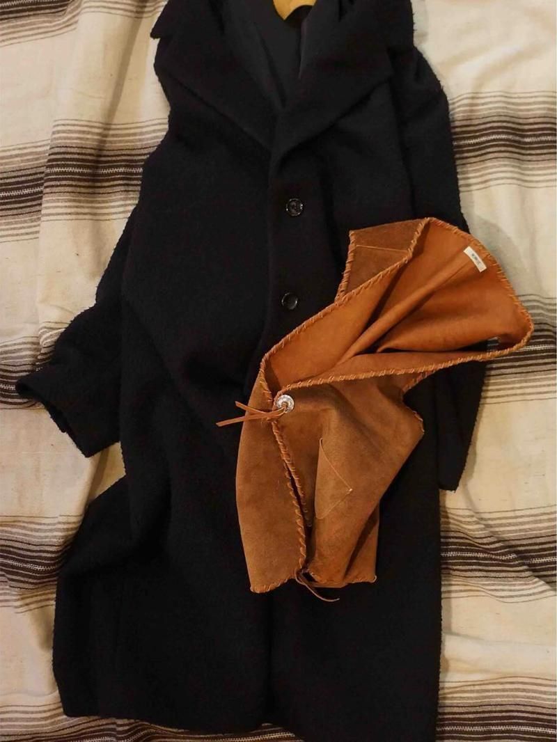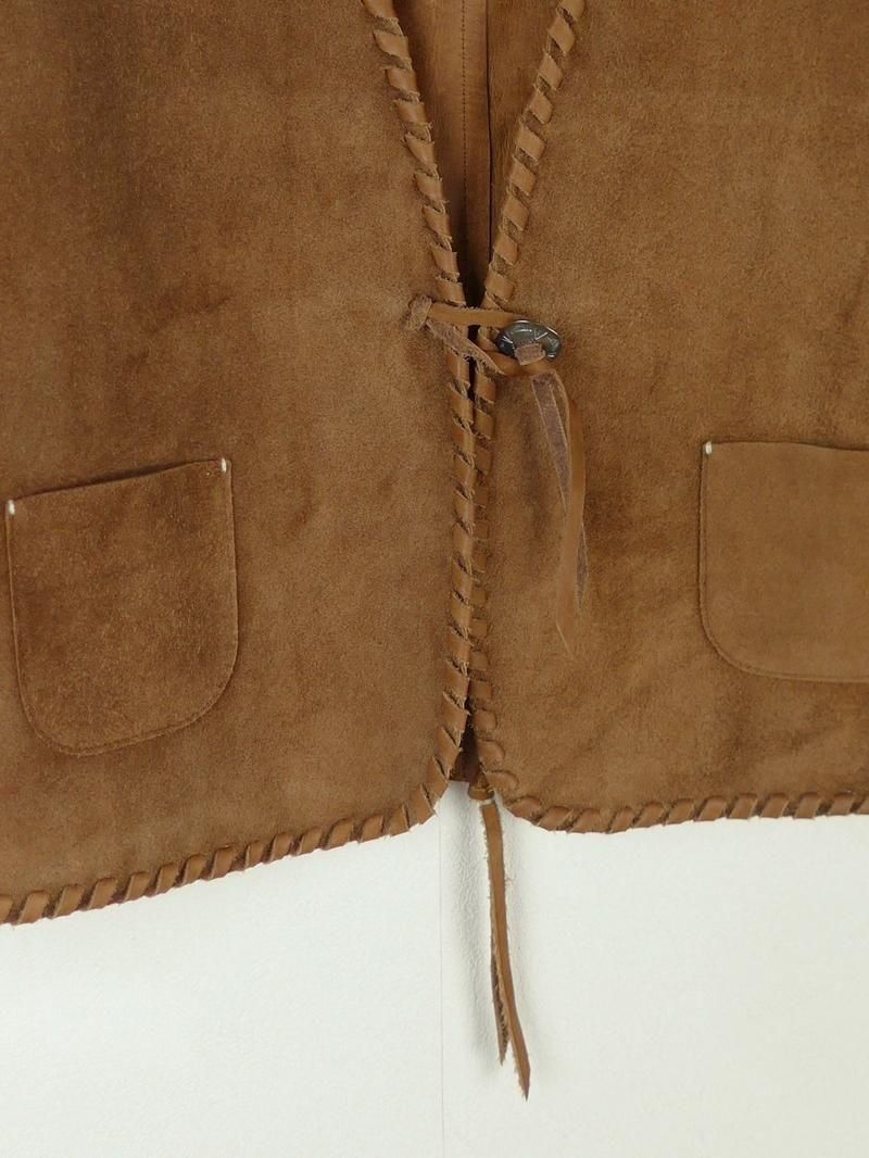 フロントのコンチョボタン、全体をぐるりと囲んだレザーステッチワークがポイント。