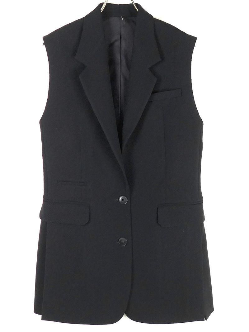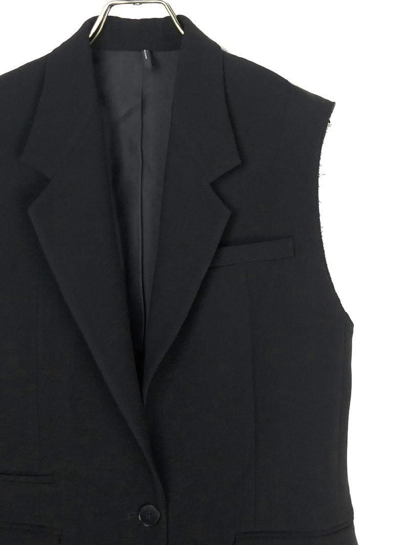 テーラージャケットに使わられるようなしっかりウールライクな雰囲気に仕上げたストレッチポリエステル素材のジレ。