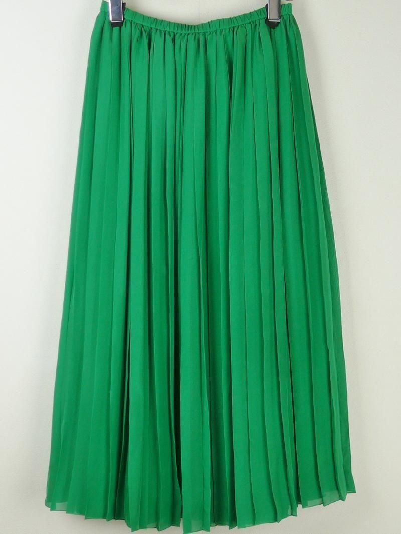 シンプルなアコーディオンプリーツスカートを、最高級シルク地と発色の綺麗なケリーグリーンでBLAMINKらしくエレガントに仕上げた一枚です。