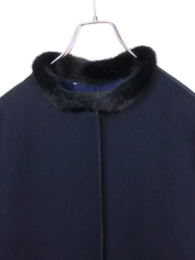 カシミヤ混の高級リバーメルトン素材を使用したミンクファーカラーコート。