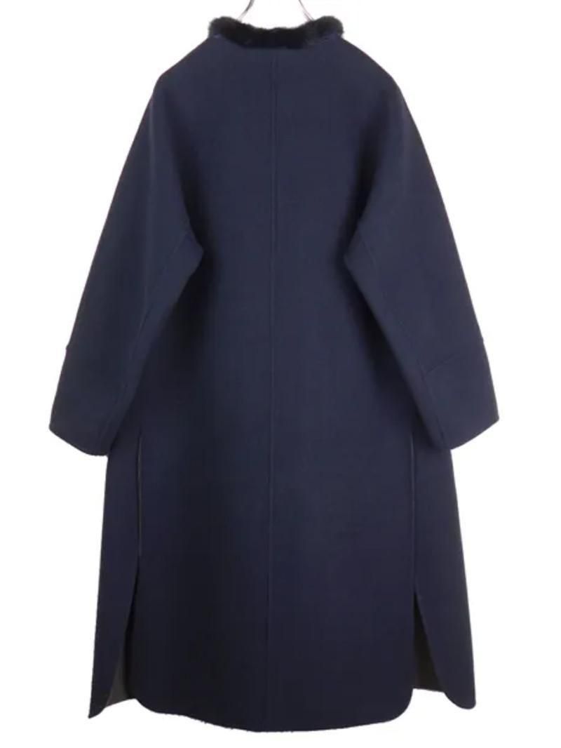 ミンクファーの襟は取り外し可能で、シンプルなノーカラーコートとしても着用可能です。