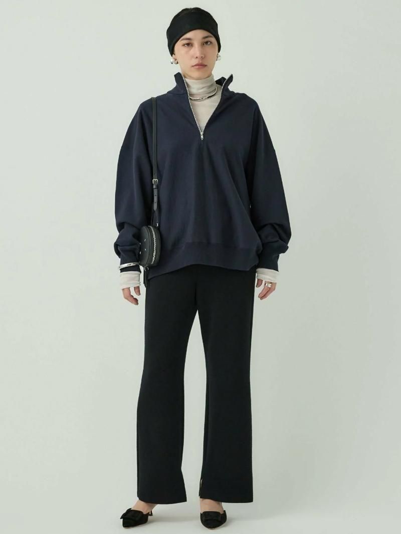 やや裾にかけてフレアになっている事でニットパンツでもシルエットが綺麗です。