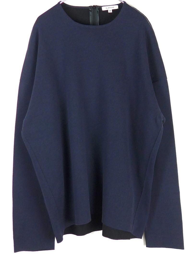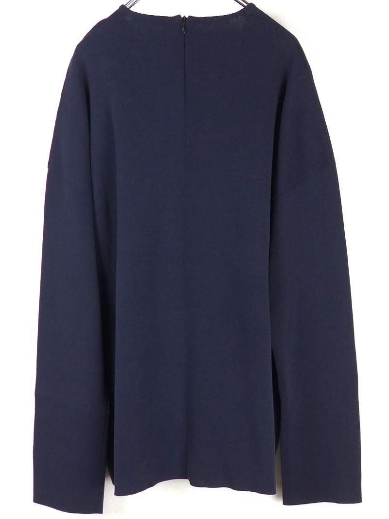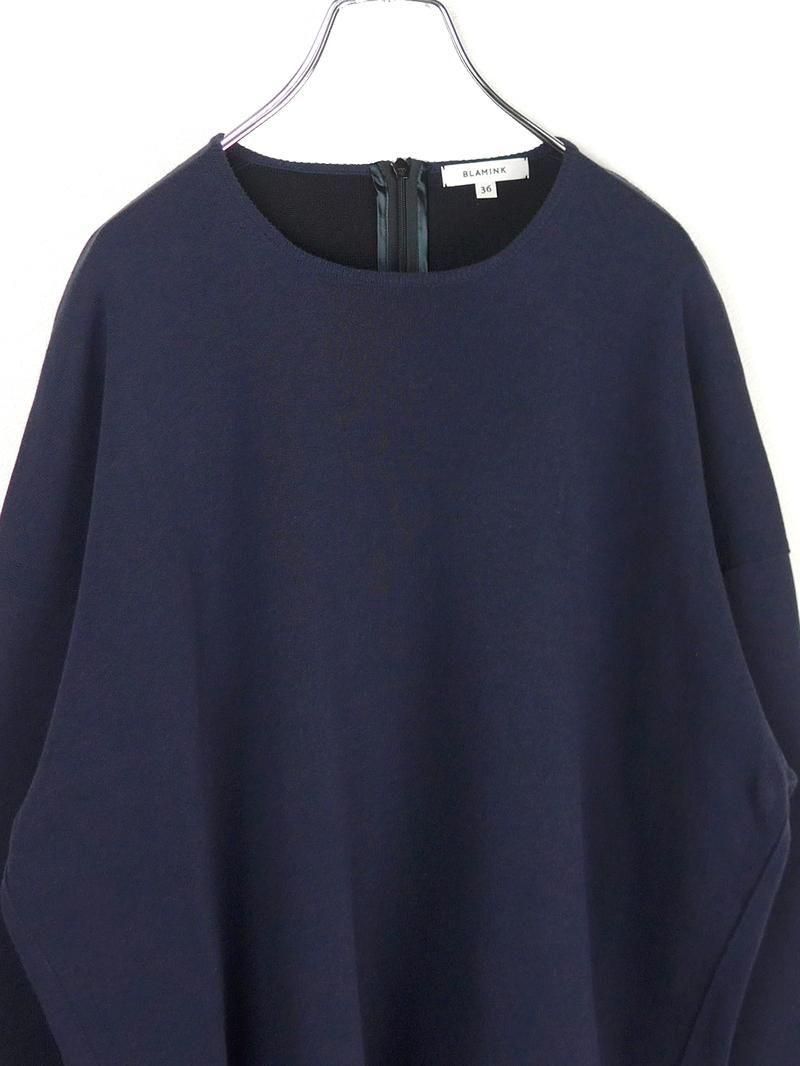 表ネイビー×裏ブラックのダブルフェイスニットを使用したクルーネックプルオーバー。
