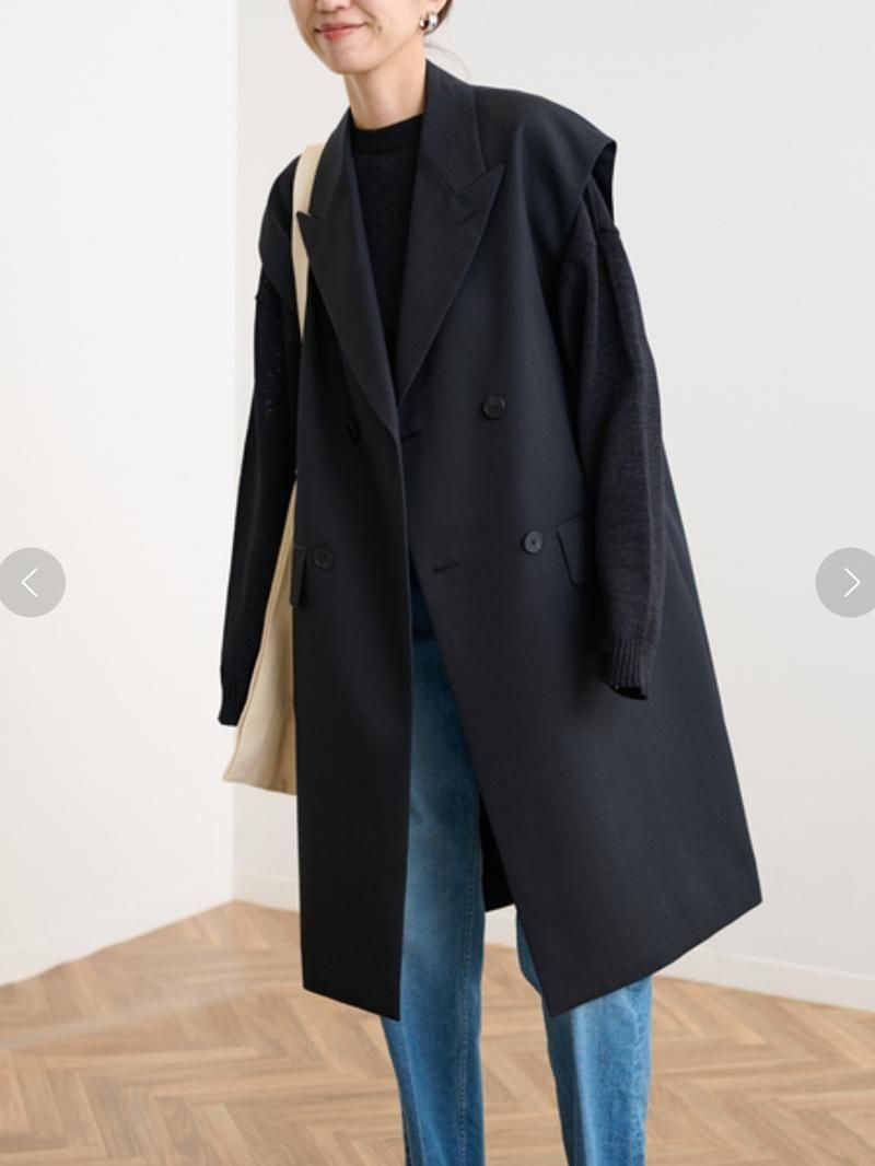 ボックスシルエットのピークドラペル・テーラードジレ/ベスト。