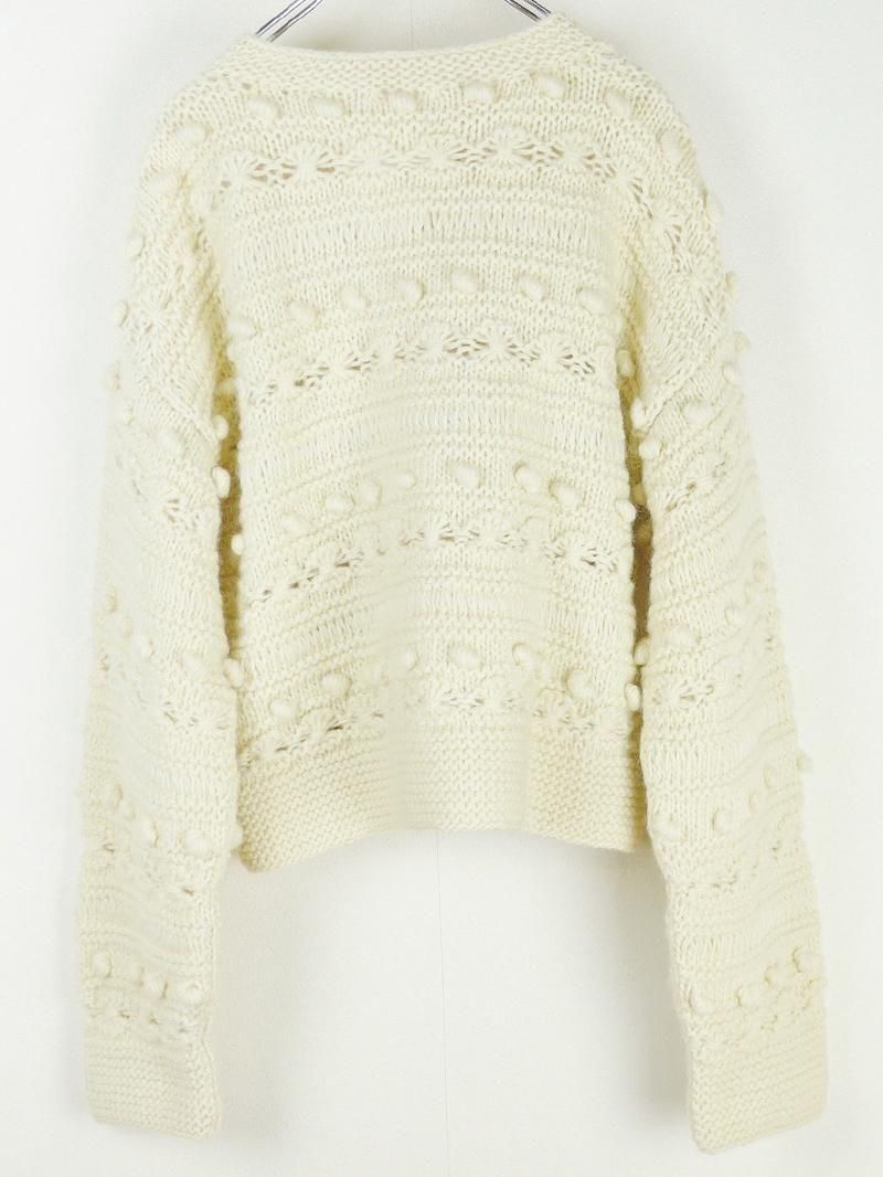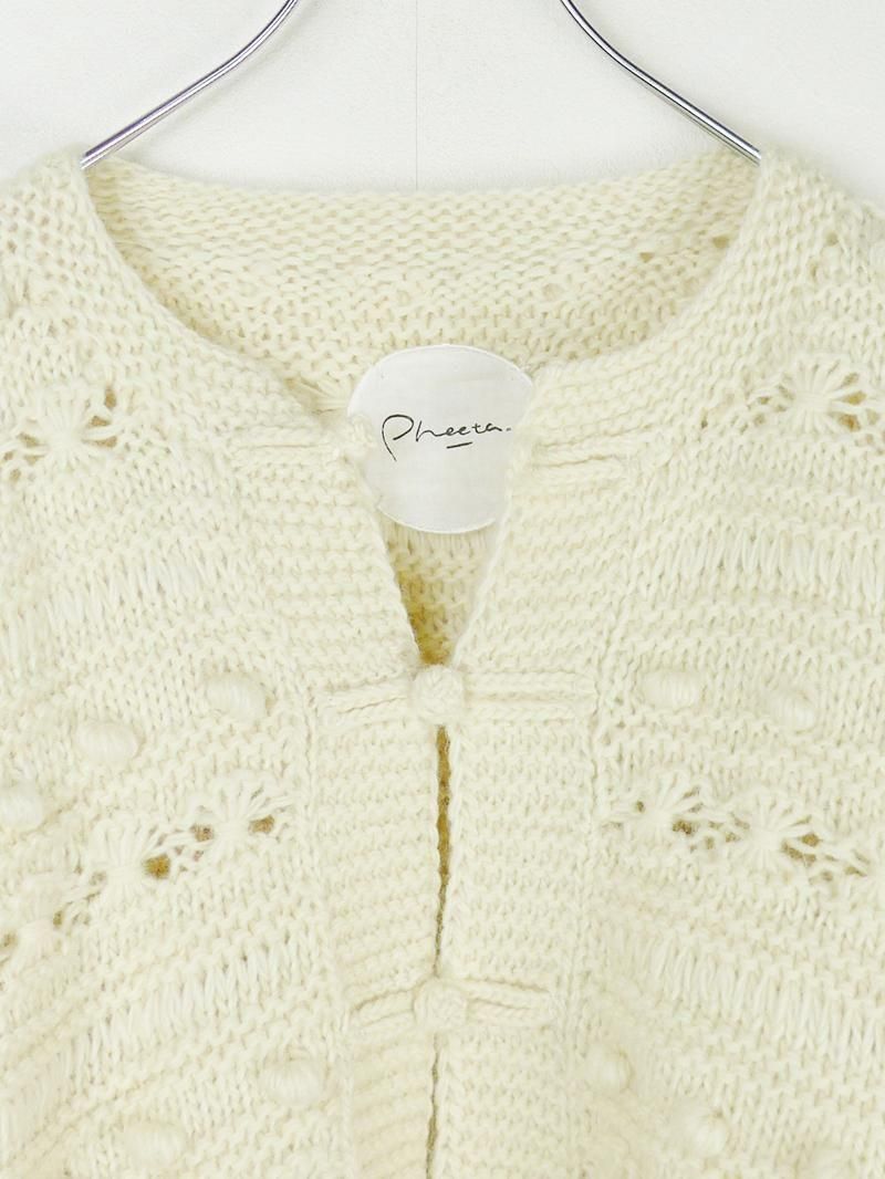 ポコポコとしたかわいい編地に、チャイナ風のニットボタンもアクセントになっています。