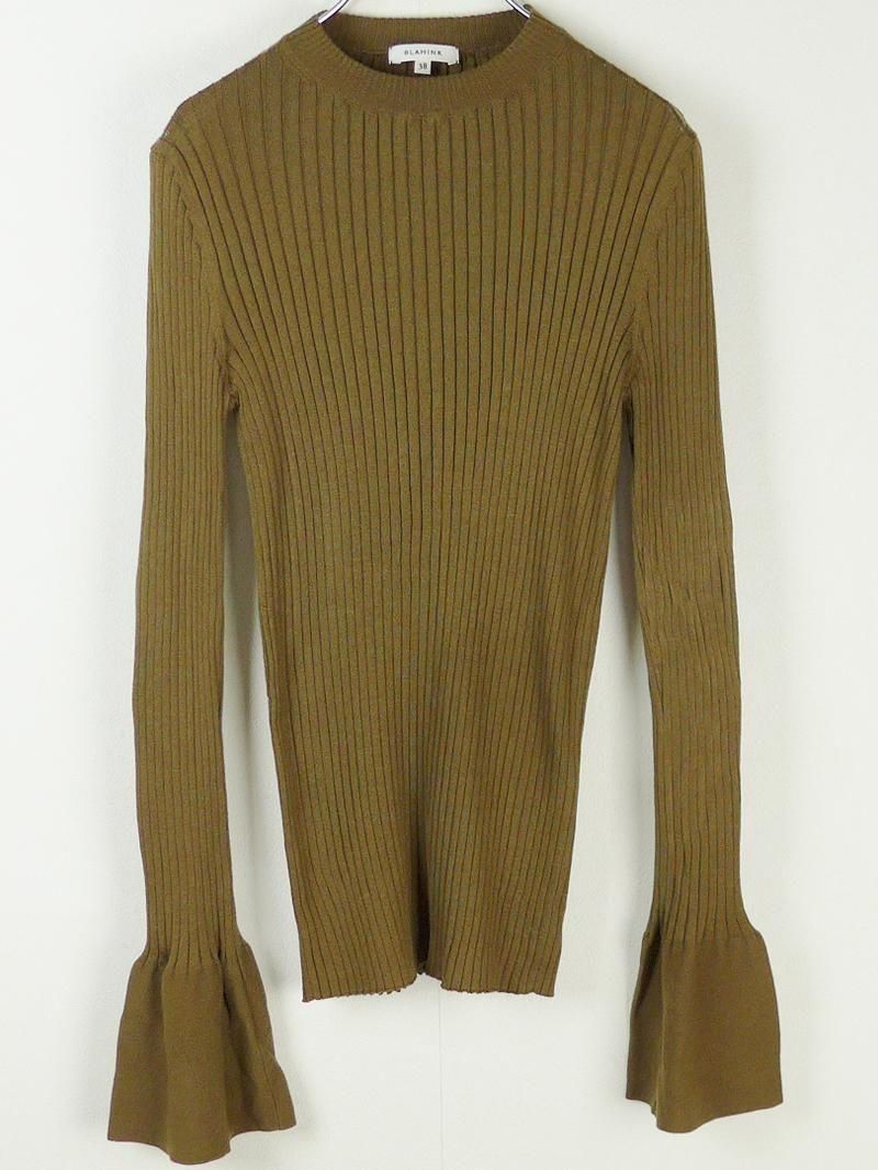 ブラミンク2023SSのシルクコットン18Gリブロングスリーブ。 定番的なリブクルーニットを、ベルスリーブで仕上げた一枚。 一枚でもサマになり、アウターとのレイヤードスタイルでもコーディネートをワンランクアップさせてくれます◎