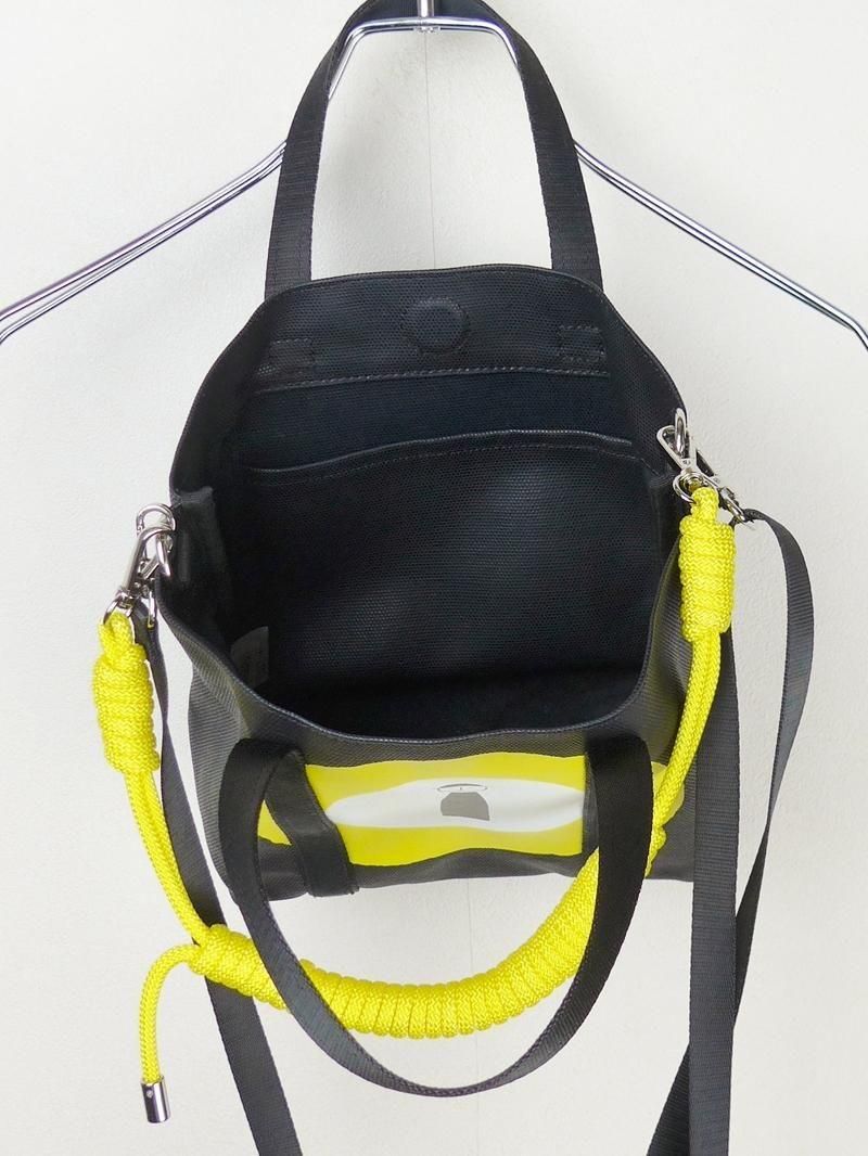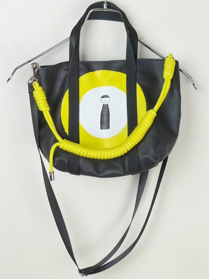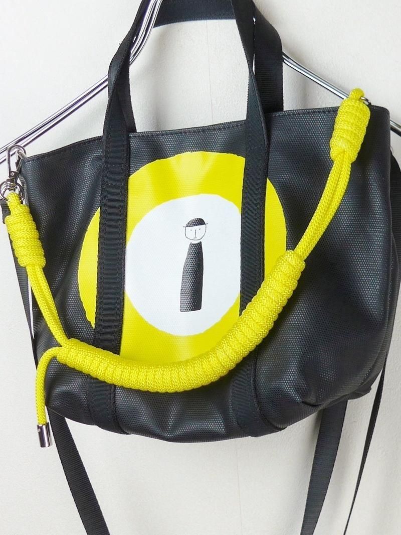 取り外し可能なロープタイプのハンドルが特徴で、付属のショルダーストラップを使用すれば、ショルダーバッグとしてもお使いいただけます。
