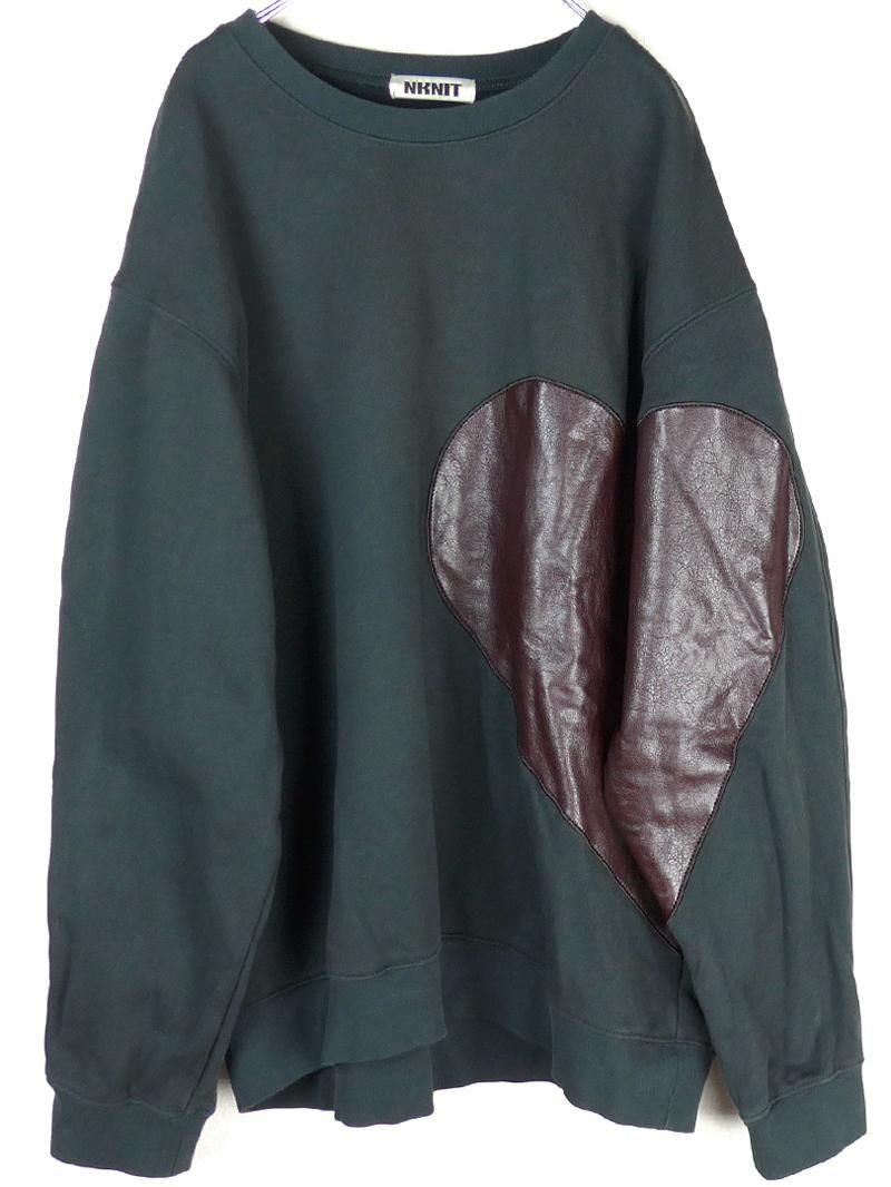 かわいいハートモチーフに、ニュアンスグレー×ブラウンエコレザーの渋いカラーコントラストもNKNITならでは。