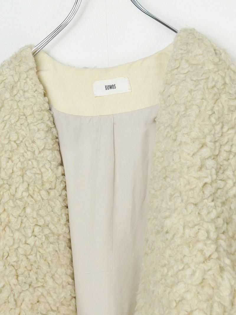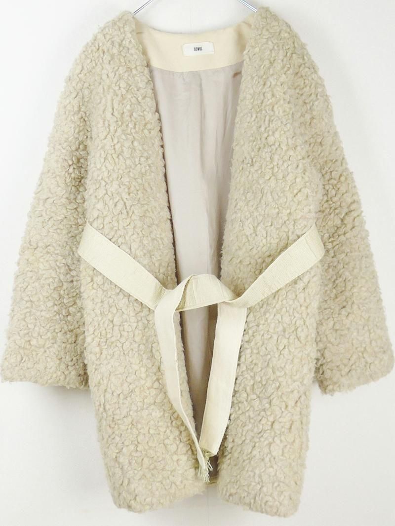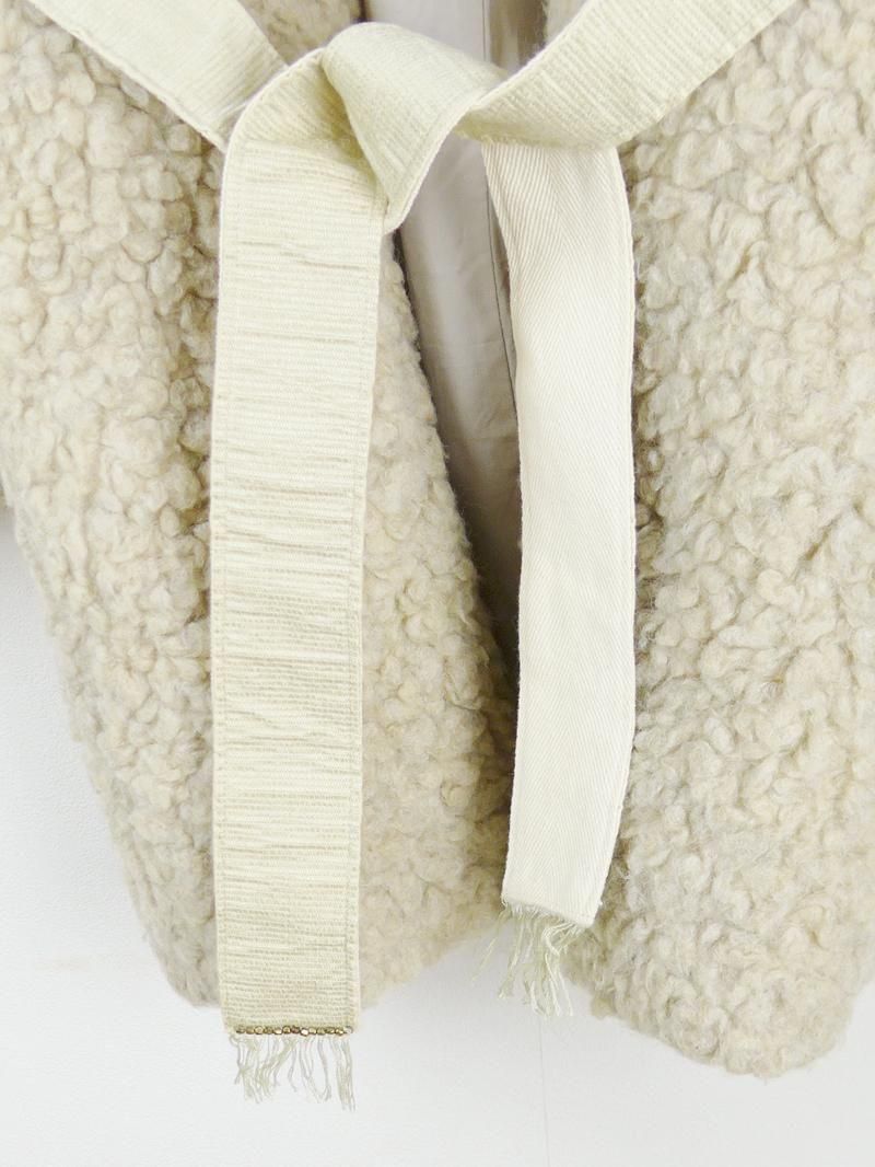 ボリュームたっぷりの総ボアで仕上げた、ベルト付きガウンコート/ジャケット。
