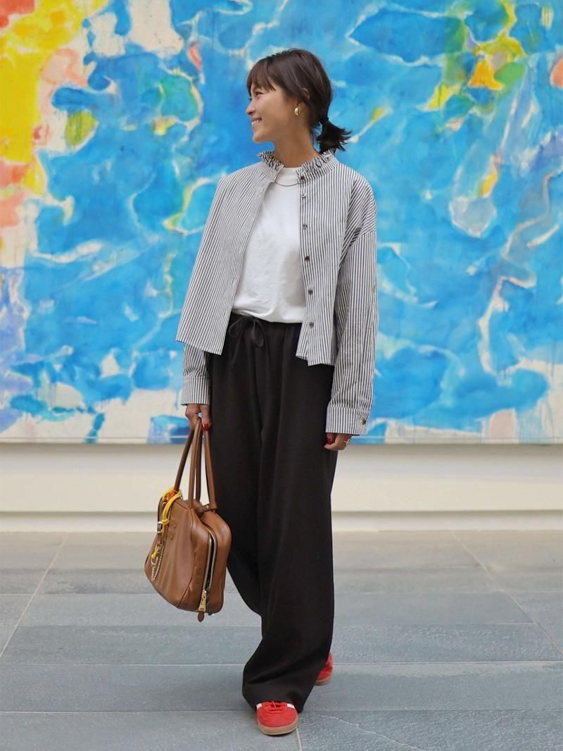 ゆるっとしたシルエットと面のいい生地が生み出す美しいドレープがリラクシー感と綺麗目を両立。