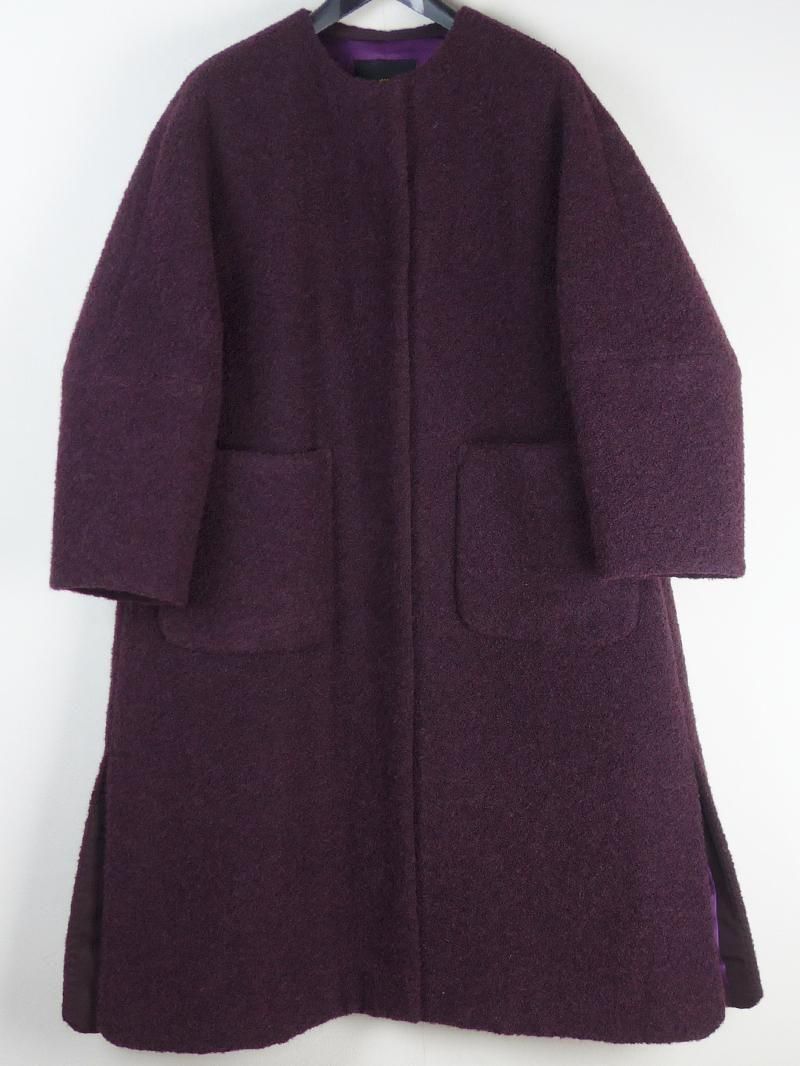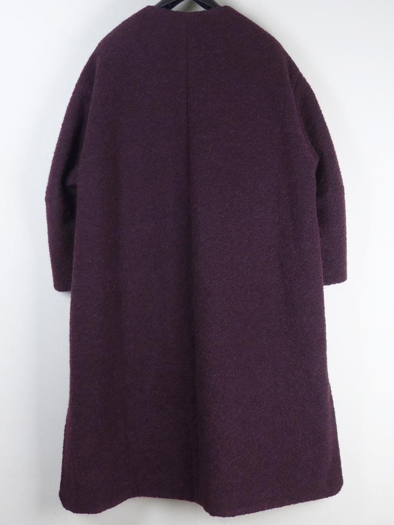 細かいランダムなループ仕立てのウールツイード素材が魅力たっぷりなノーカラーコートです。
