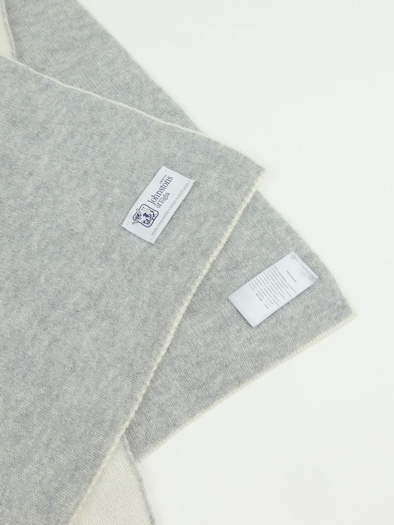 ジョンストンズのカシミヤニットショートストール/リバーシブル。 ふわふわ柔らかいホワイトカシミヤのニットストール。 くるっと一巻きの長さが嬉しい。 ちょっと寒い時、コートの襟元に入れたい時。。カバンにいつも携帯できます。