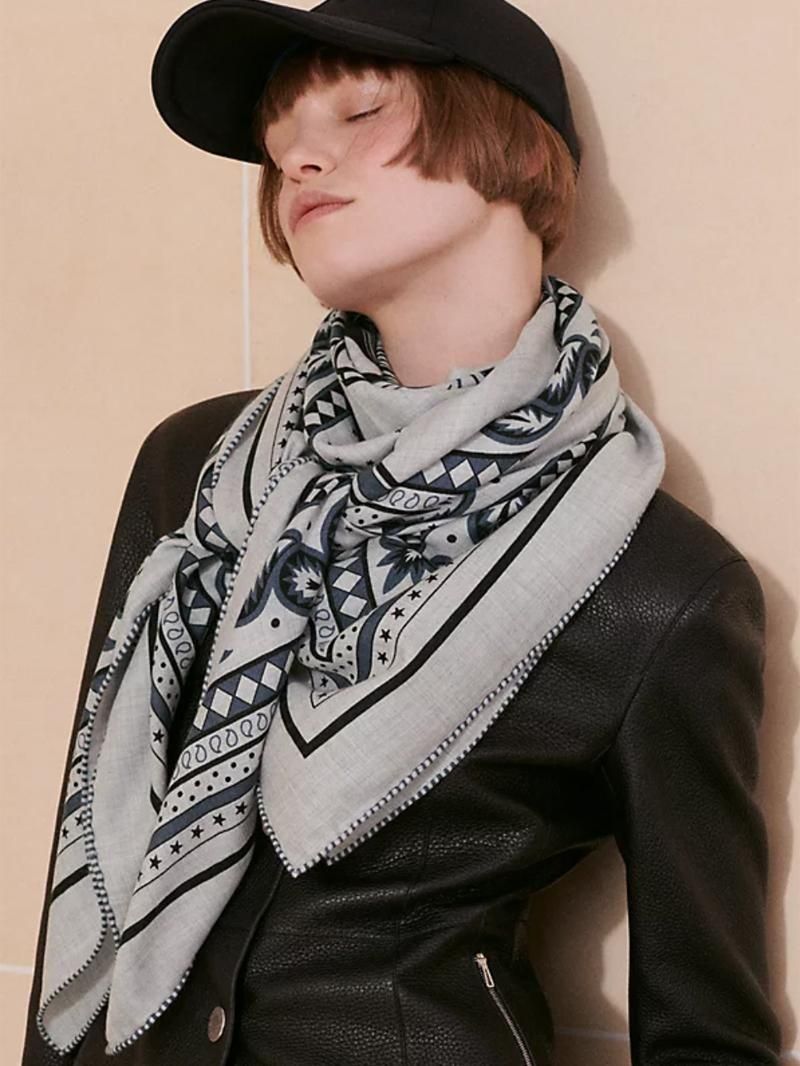 エルメス2024AWコレクションのカレジェアン《四輪馬車の車輪・バンダナ》。