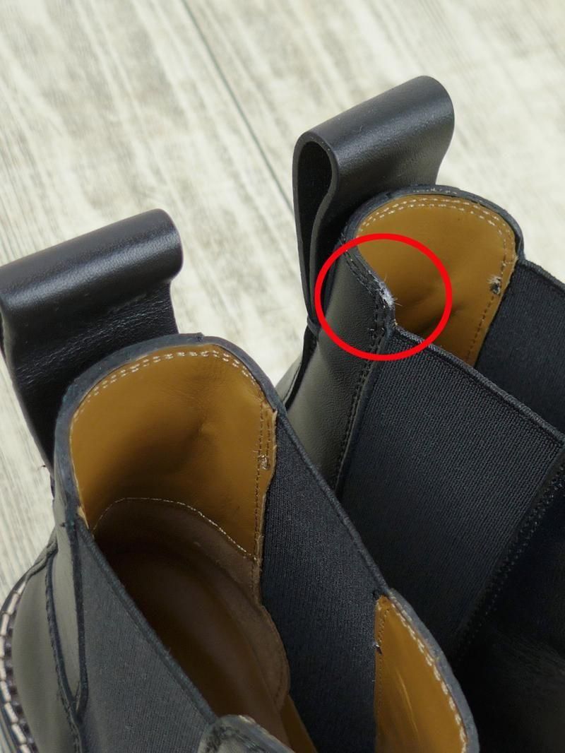 着用回数の少ない極美品。左足履き口に一箇所微細な小スレはありますが、着用回数自体はかなり少ないように見受けられます。