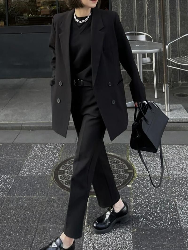 オクスンの定番人気アイテム、ブラックセットアップのパンツ。 色んなシーンで使えるストレッチ入りのスラックスパンツ。 足を真っ直ぐに見せてくれる綺麗なライン。 夏以外の長いシーズンお召し頂けます。