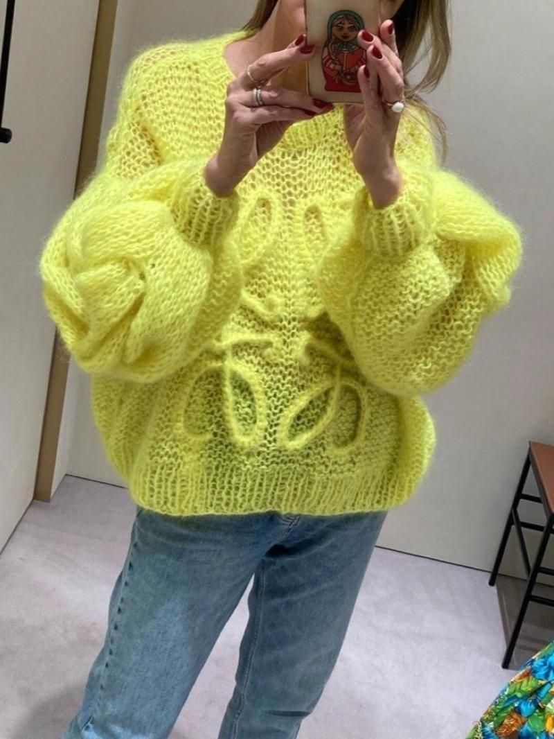 鮮やかなイエローカラーが冬のスタイリングを一気に華やかにしてくれるローゲージモヘヤニット。