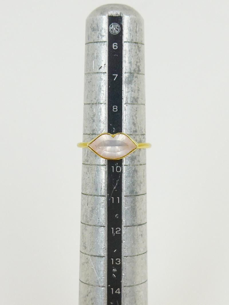 愛らしいリップデザインのリングは、唇に厚みのある立体感を出すために、ローズクォーツをハンドカットしています。