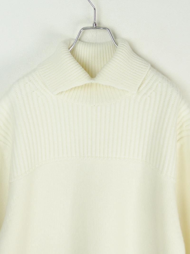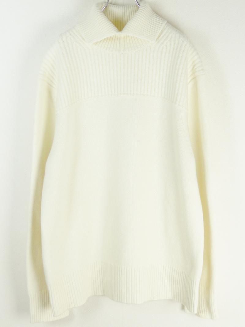 ふっくらとした厚みのあるウールカシミヤを使用。ローゲージのゆったりとしたシルエットながら、度目の整ったキレイな表面感で上品なスタイリングを叶えます。