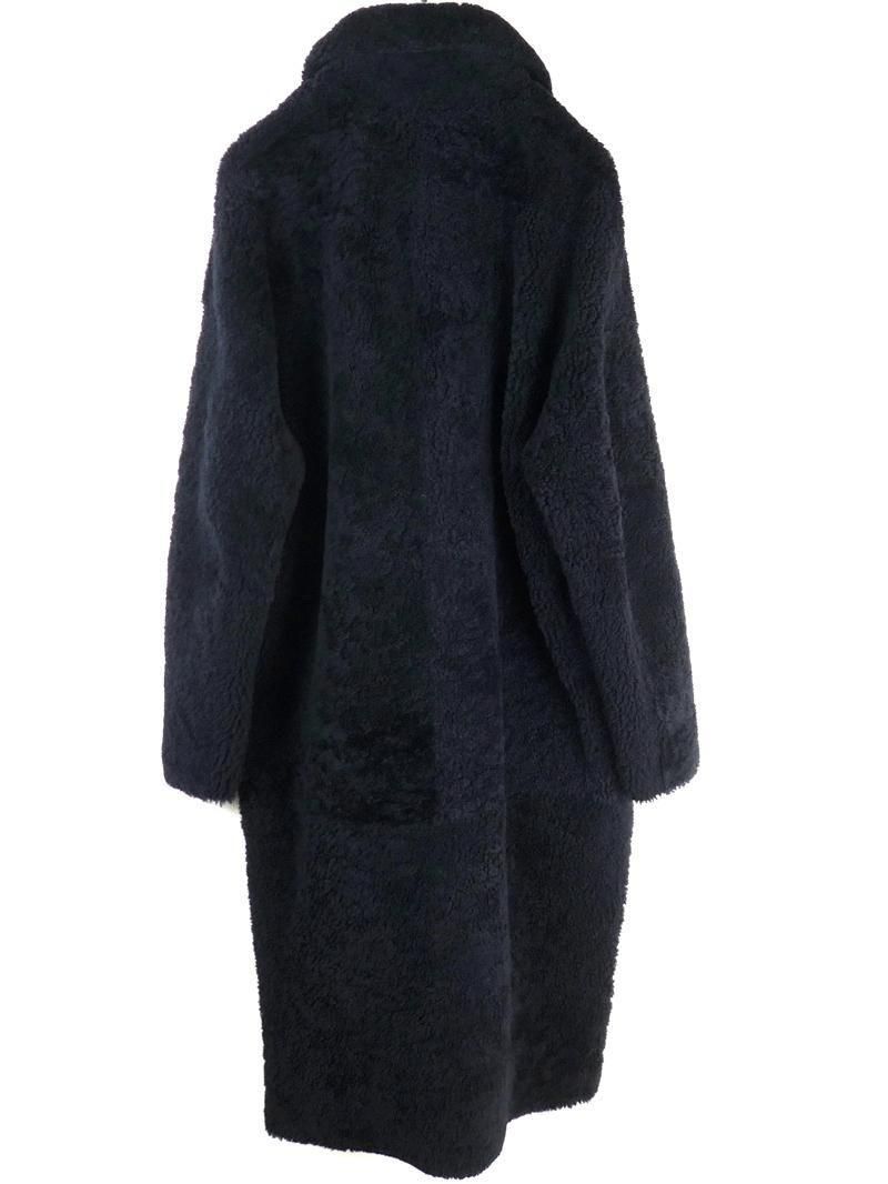 黒に近い絶妙なネイビーカラーで仕上げた、最高級ムートンのボアロングコートです。