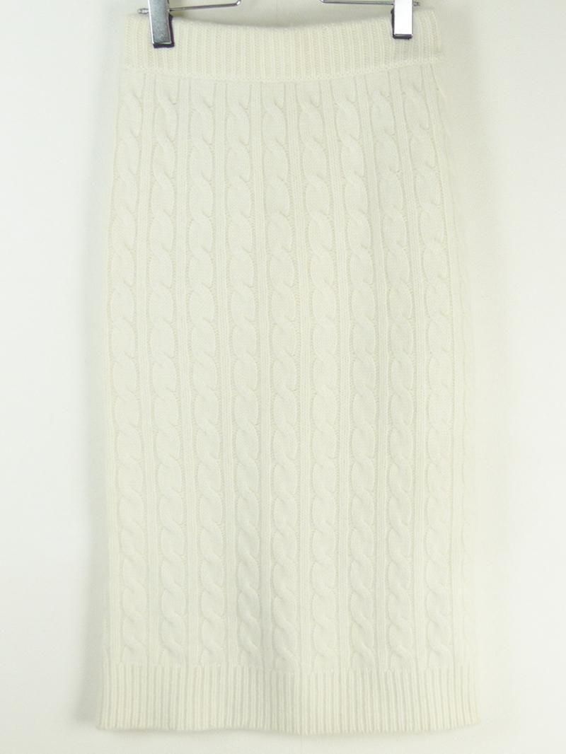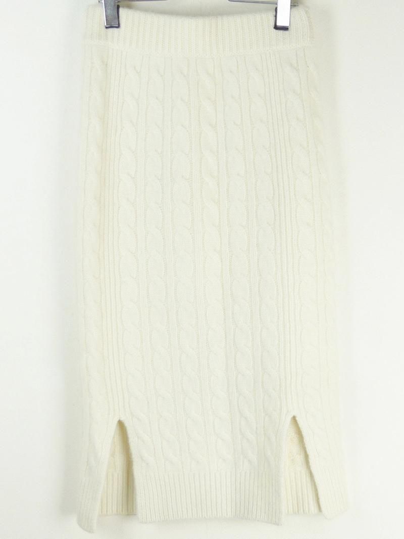 ブラミンクのカシミヤケーブルニットスカート。 贅沢なカシミヤ100%のニットスカート。 厚手で暖かでありながら、非常に柔らかく肌触り優しい一枚です。 Iラインシルエットに、後ろ寄りにサイドスリット入り。