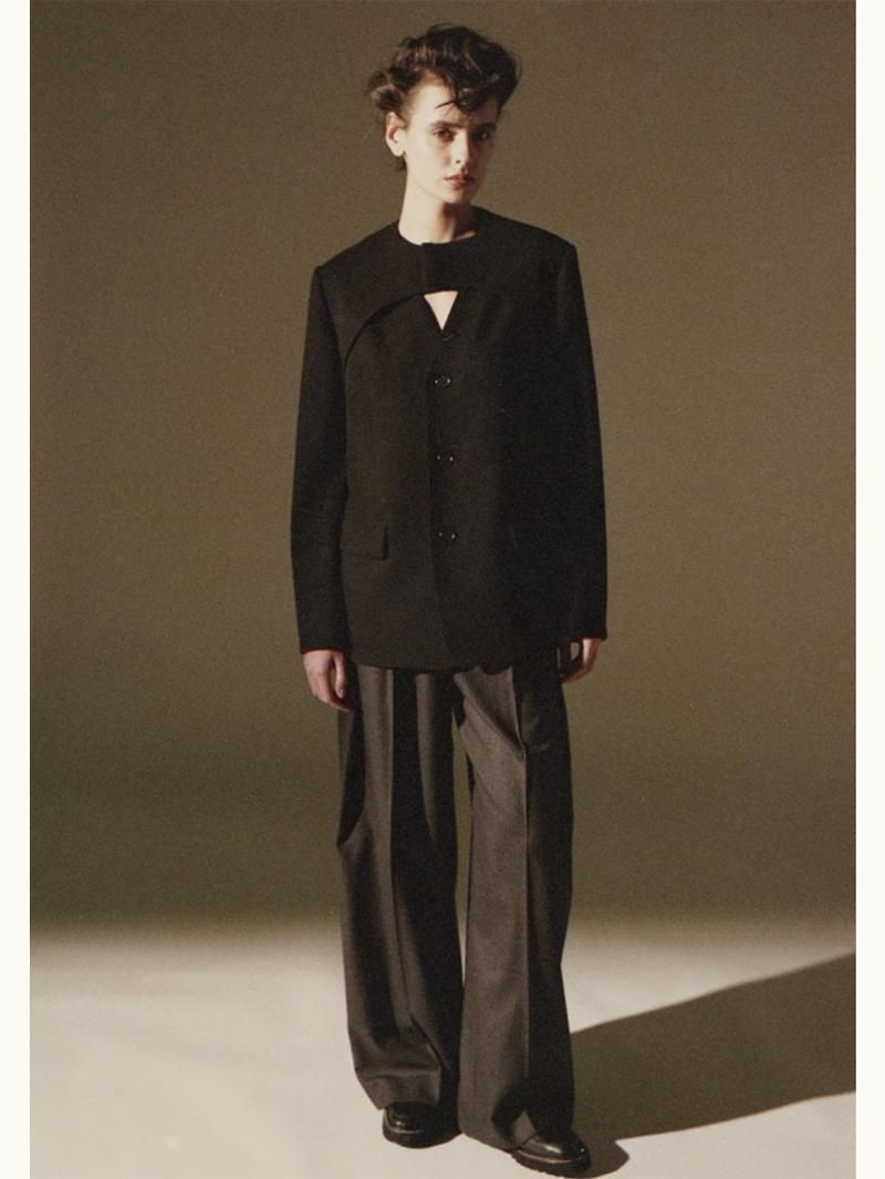 ワンタック+サイドを内側に折ったような腰回りから、裾に向けて綺麗なドレープがINSCRIREならではのかっこいいシルエット。