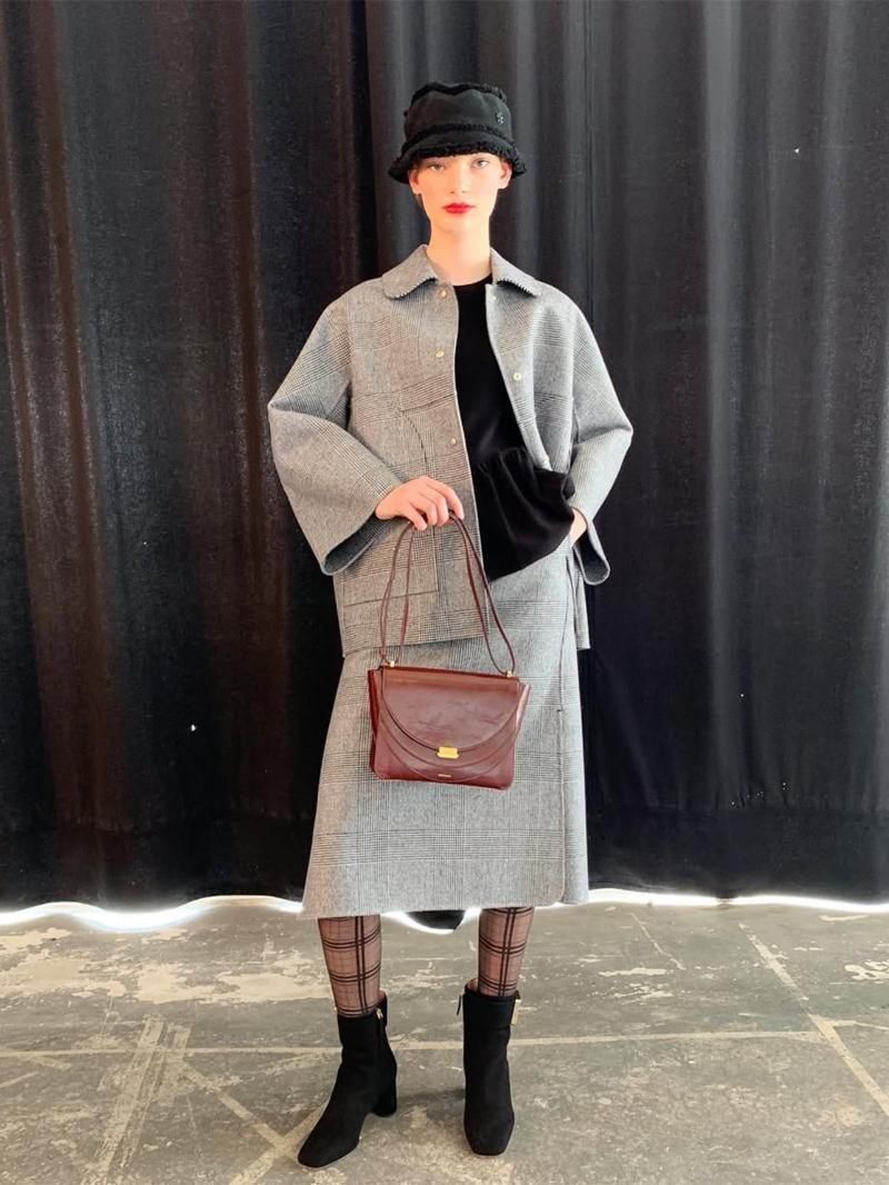 ドゥロワー2019AWの人気完売アイテム、ネイビーグレンチェックウールコート。