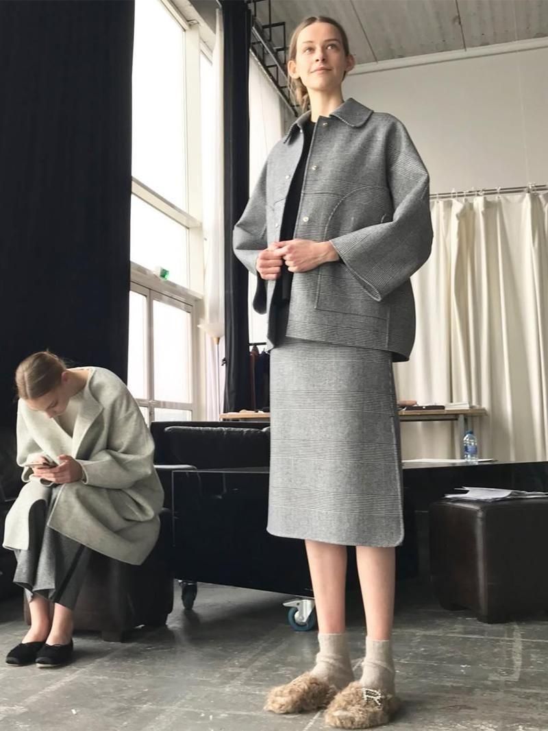 上質ウールダブルフェイス生地を使用。しっかりとしたハリ感が綺麗な微コクーンシルエットをキープします。