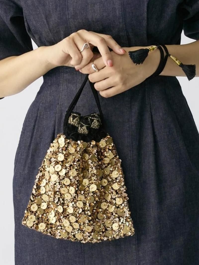 ヴェルメイユパーイエナ別注シトラス2025SSのゴールドスパンコールマルチバッグ。