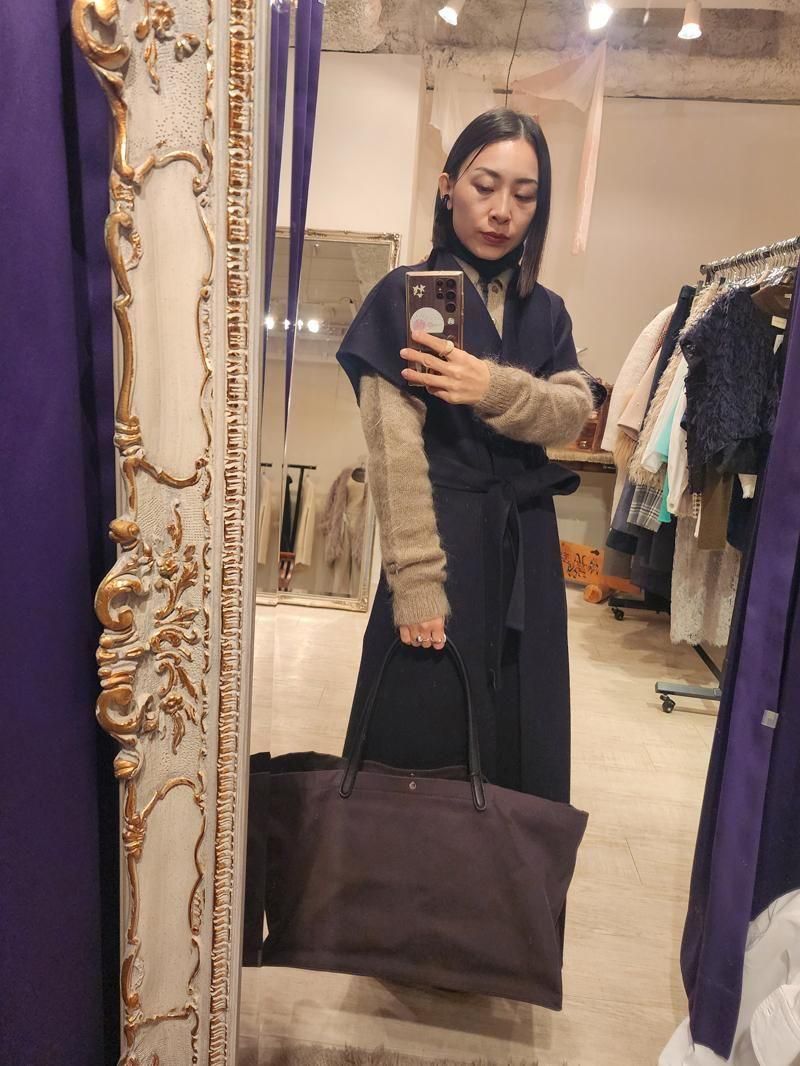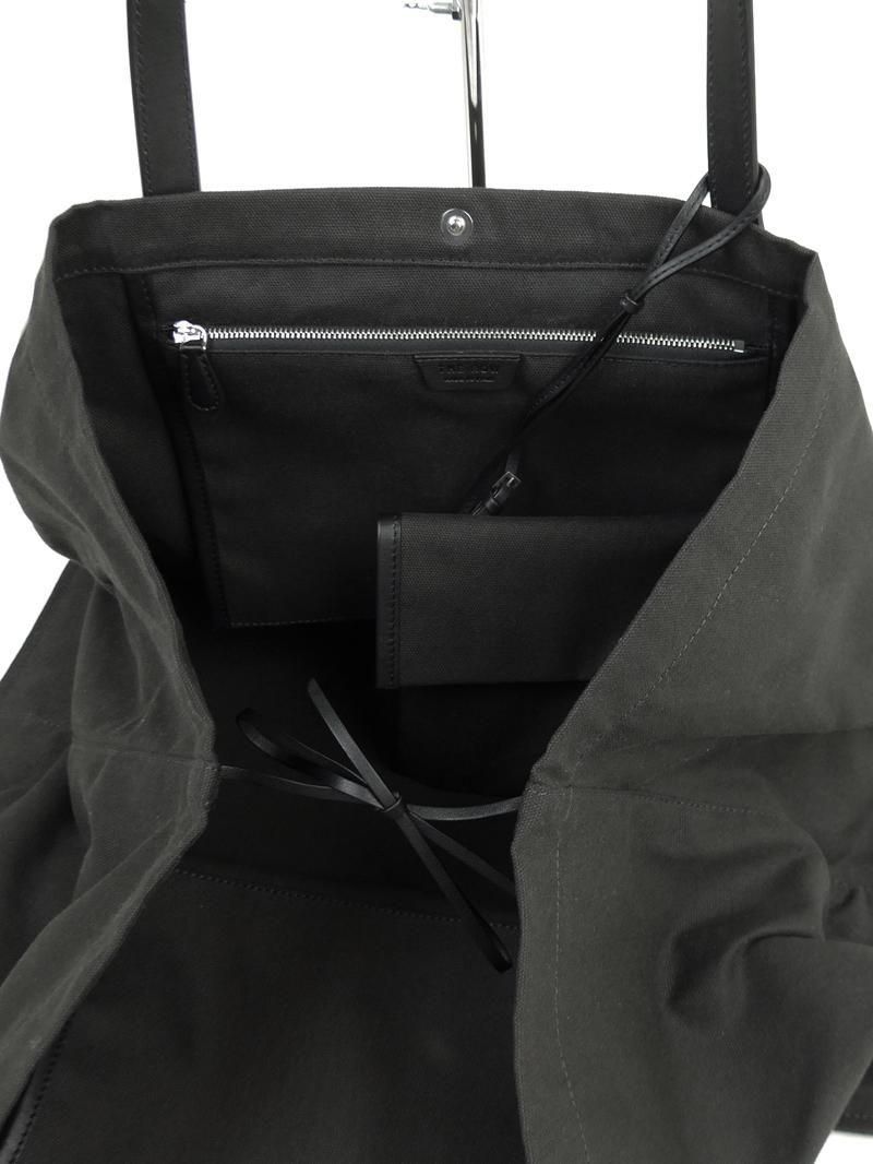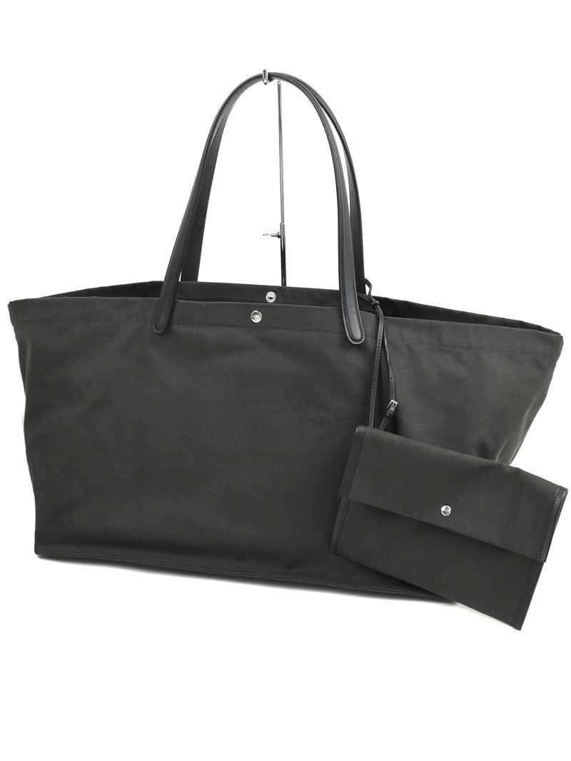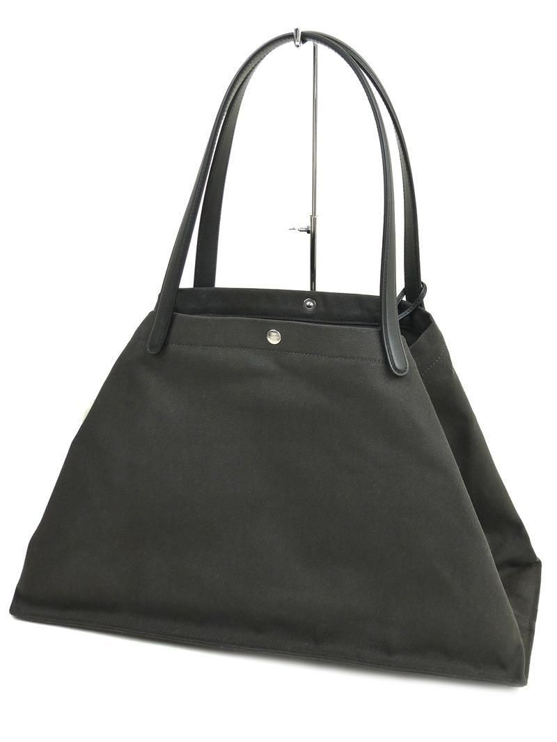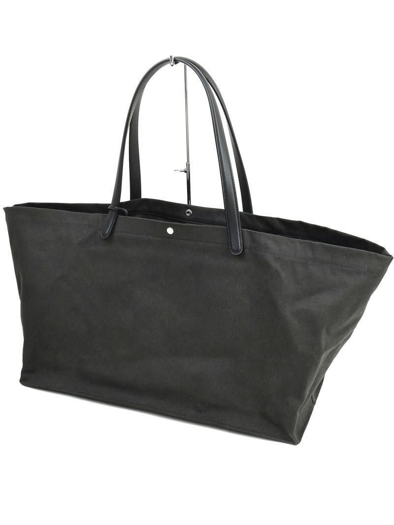 ・キャンバス地にレザーのトリムを施したトートバッグ