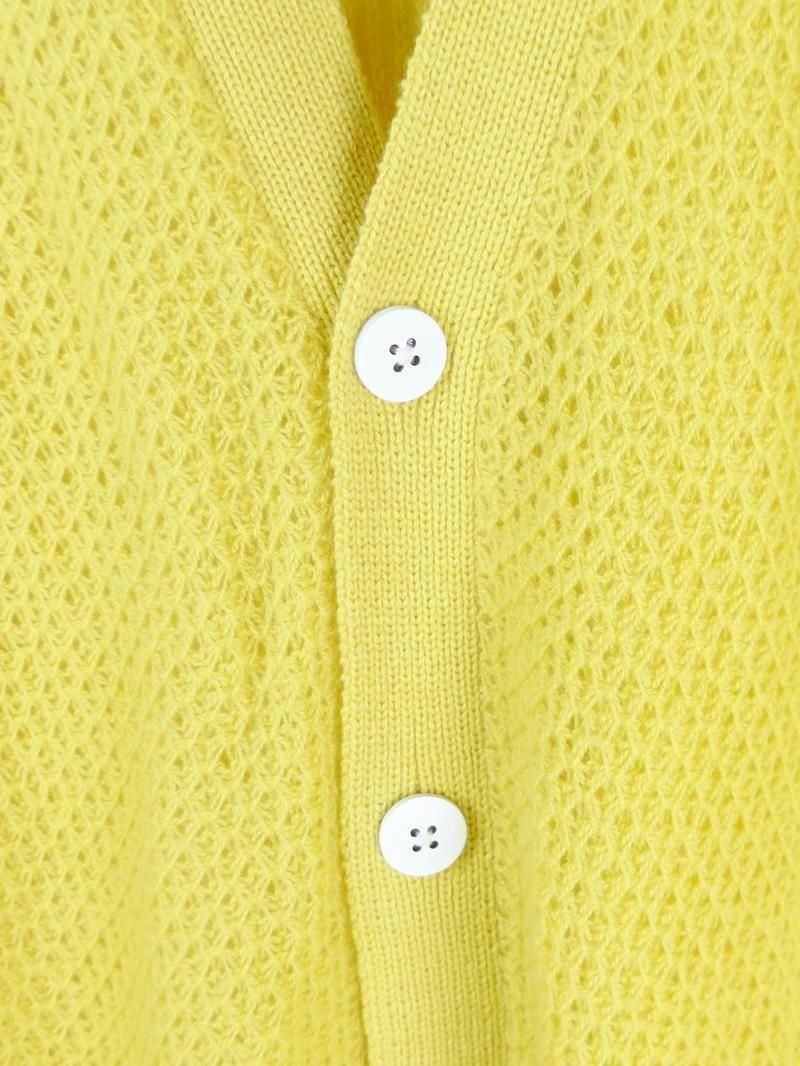 落ち着いたマスタードイエローに、白塗りしたウッドボタンもポイントです。
