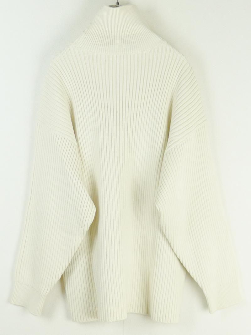 ほどよくゆとりのあるシルエットに、モードなハイネックが大人っぽいスタイルを作り出します。