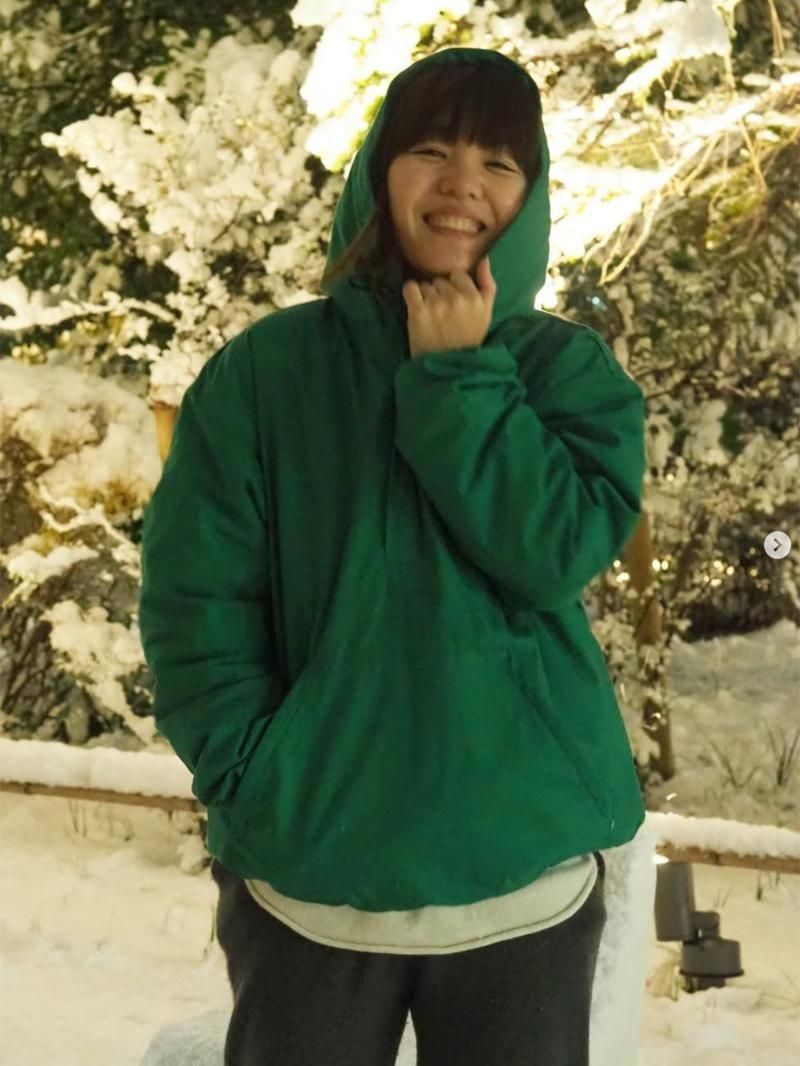 アボードオブスノー2021AWの人気完売アイテム、「ルンタ」ライトダウンフーディー。
