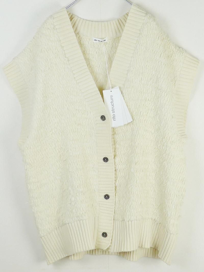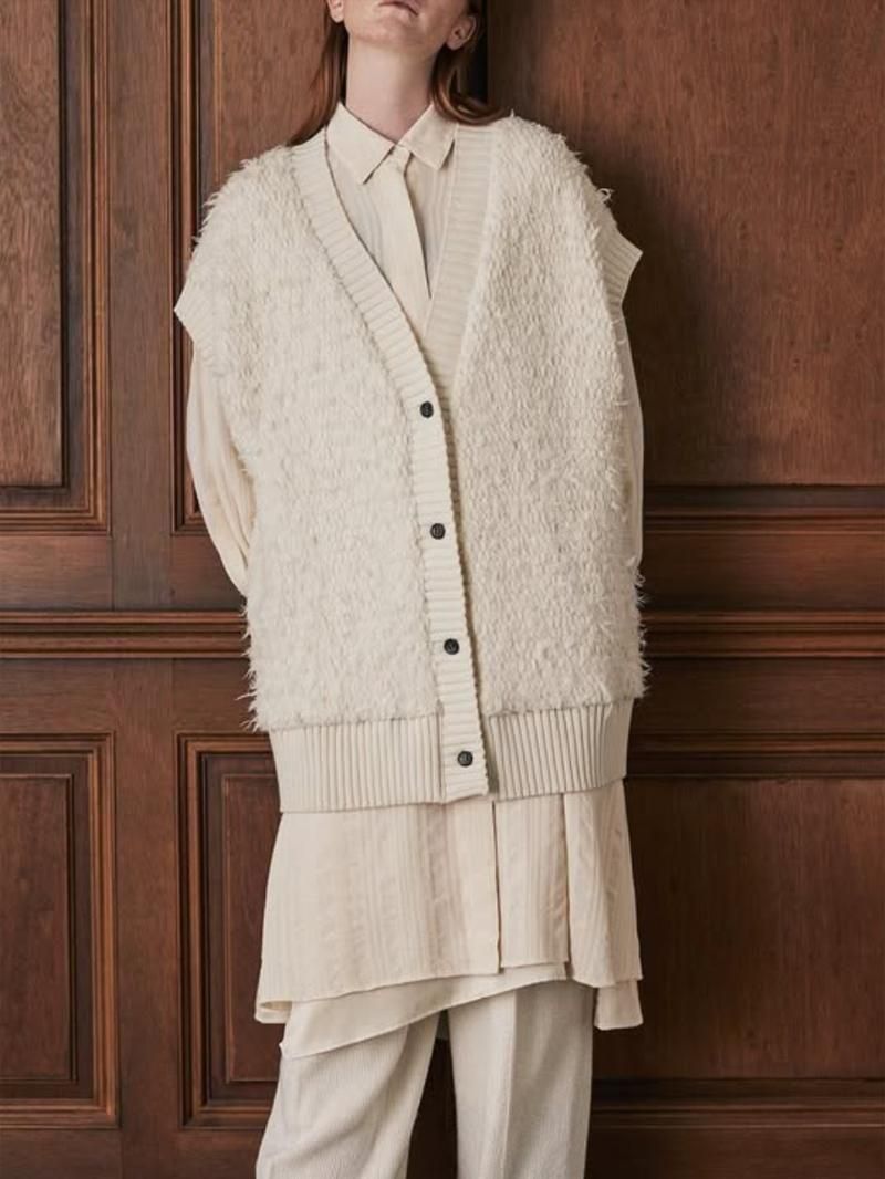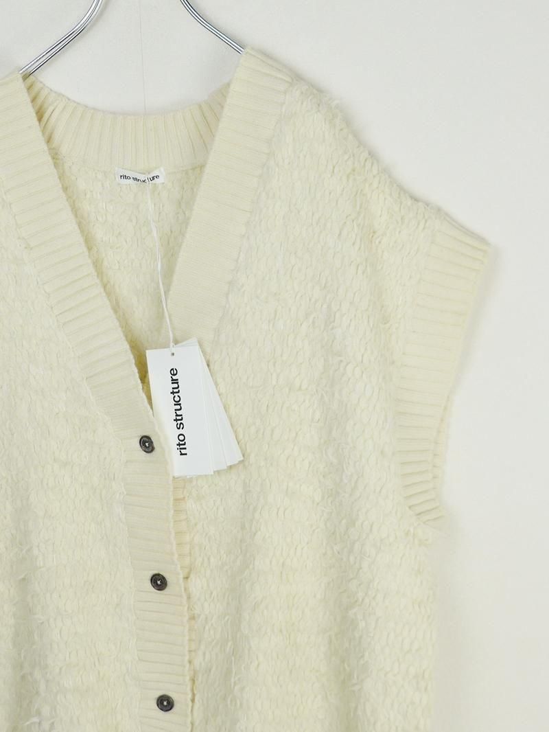 超極細のウール糸をファー状に撚糸した毛足のあるニットの風合いが印象的なベスト。