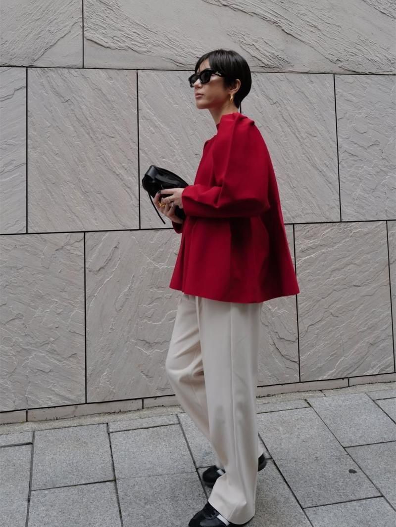 大人の女性が上品に着れるレッドカラーも魅力◎