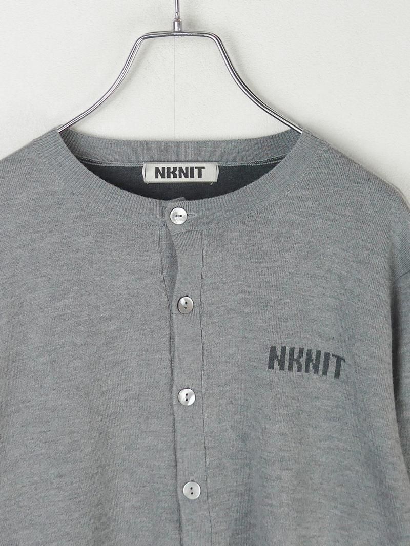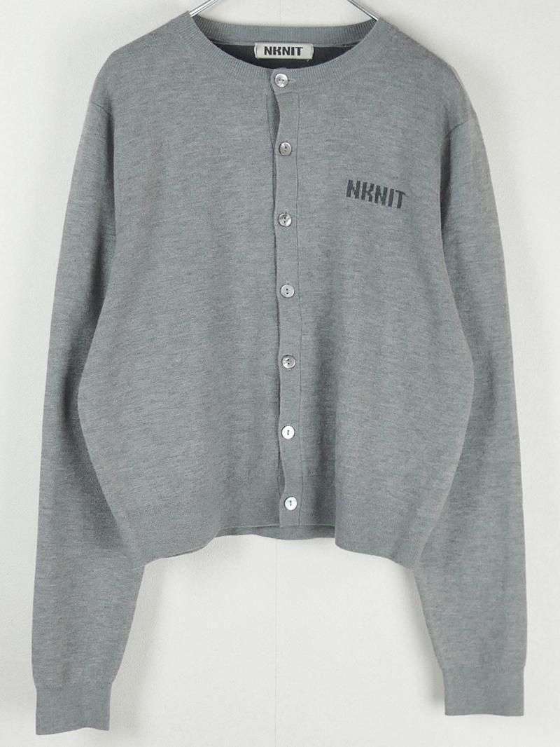 グレー×チャコールグレーのダブルフェイスニットを使用した、シンプルなロゴカーディガン。