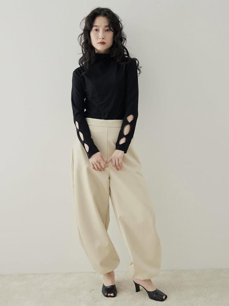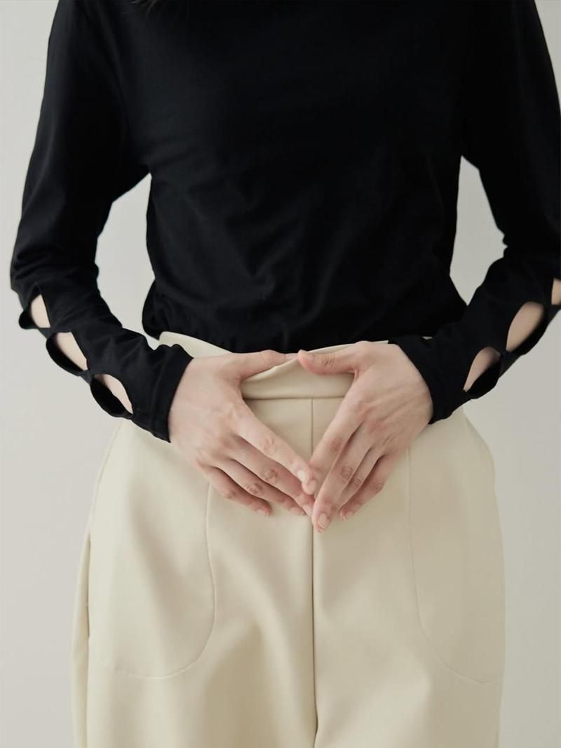 メーア今季2025AWの人気完売アイテム、スリーブホールタートルトップス。 非常に柔らかな薄手カットソー。 ストレスのないハイネック具合と、なんといっても袖のホールデザインがかわいい一枚です。 【クロネコゆうパケット発送可(同梱は不可)】
