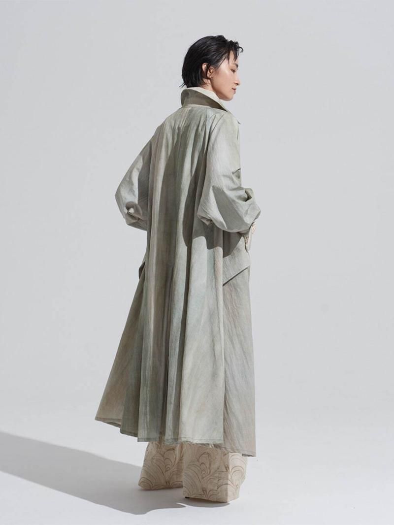エリコカトリ2022SSの“Flow dye nylon super flare coat”流し染めナイロンスーパーフレアコート。