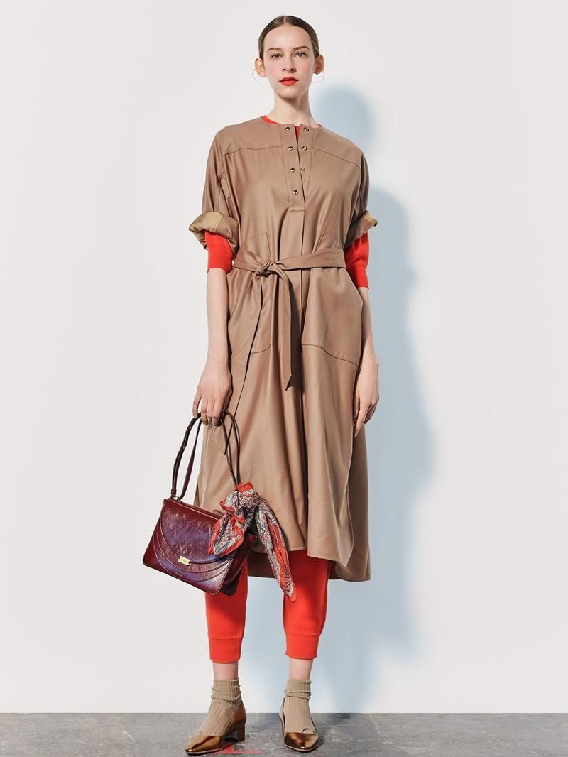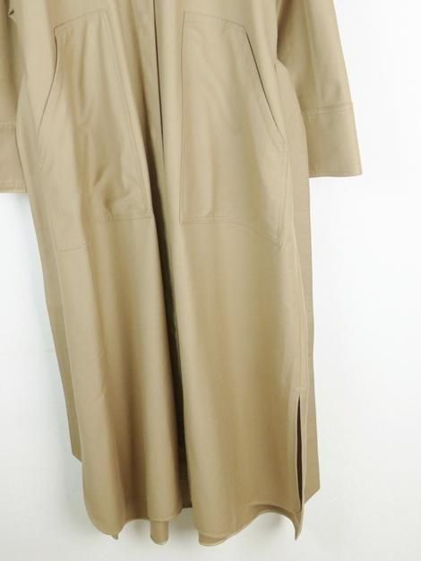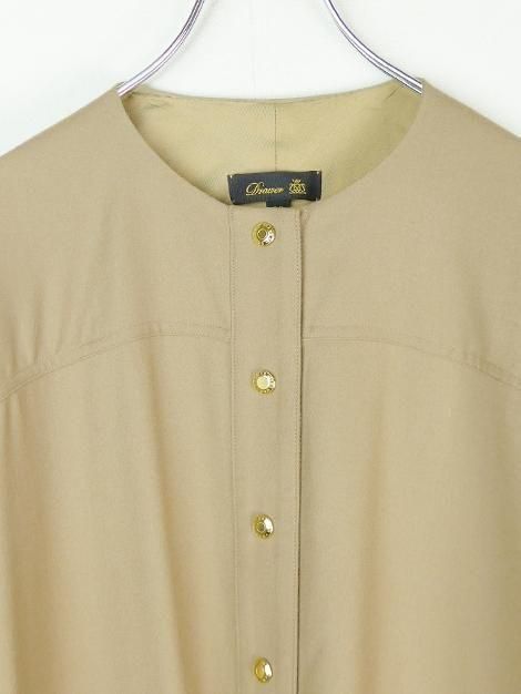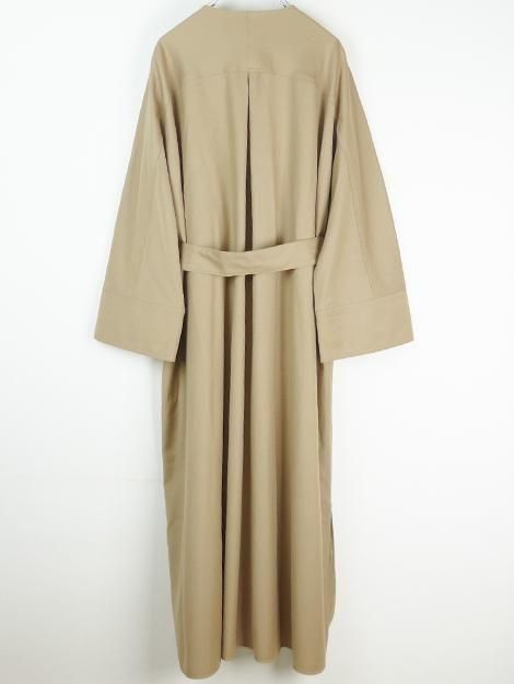 カシミヤ混の上質フランネル生地を使用したノーカラーシャツドレスです。
