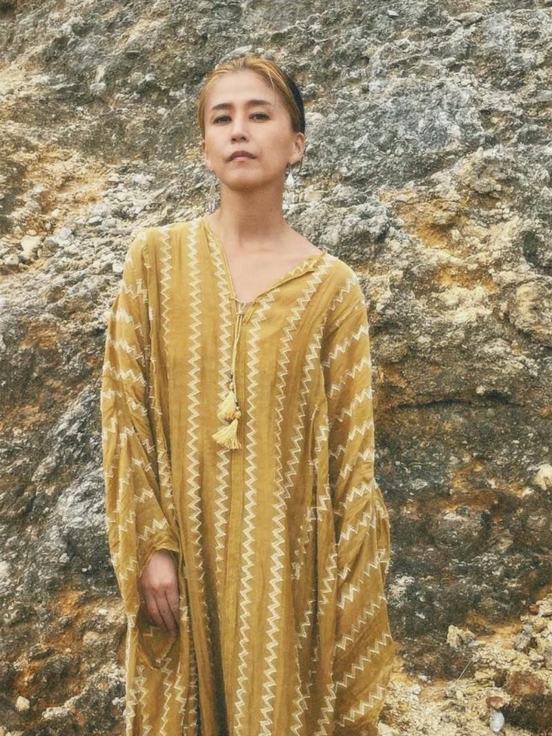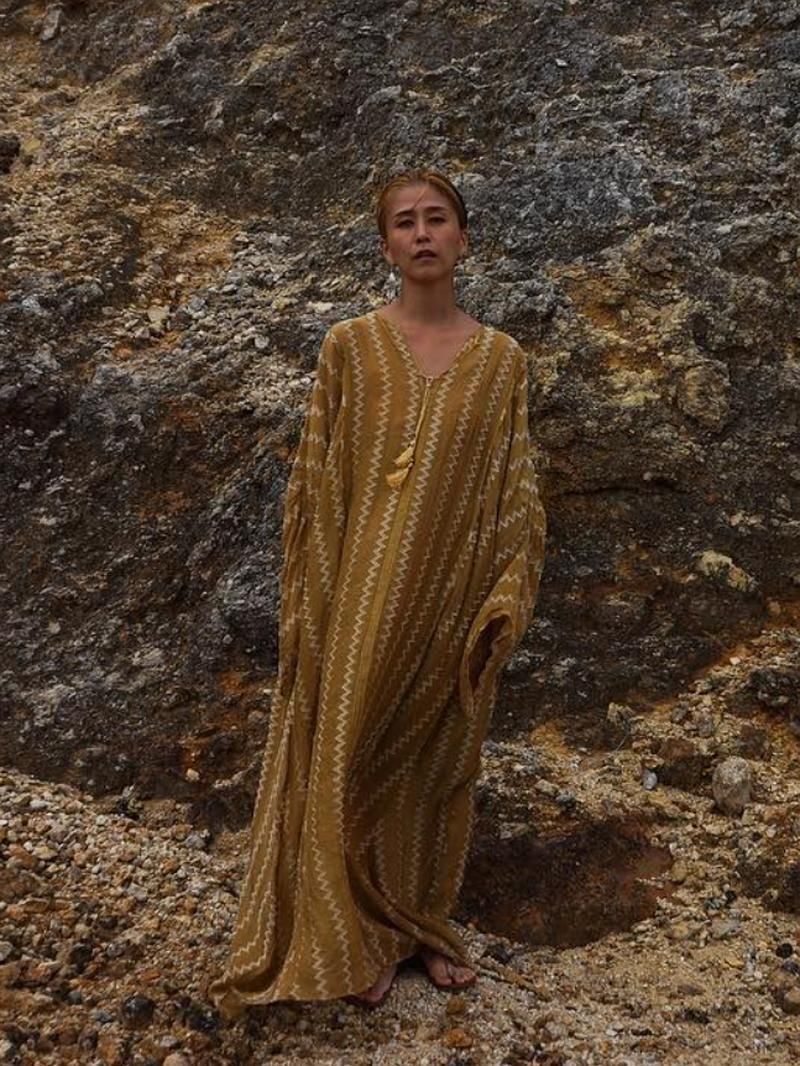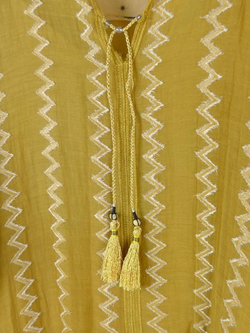 たっぷり贅沢に生地を使用したロングフレアーシルエットのカフタンワンピースです。